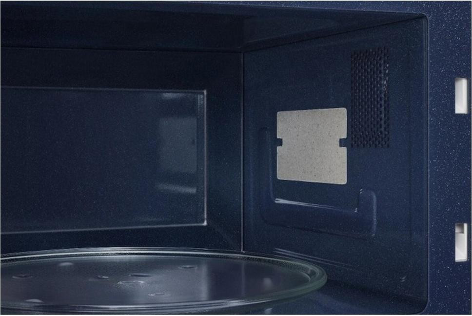 Мікрохвильова піч Samsung Bespoke MS23T5018AK поєднує в собі елегантний дизайн та сучасні технології для спрощення процесу приготування їжі. Пристрій виконаний у стильному синьо-чорному кольорі та має максимальну споживану потужність 1150 Вт, що дозволяє швидко та ефективно розігрівати страви.