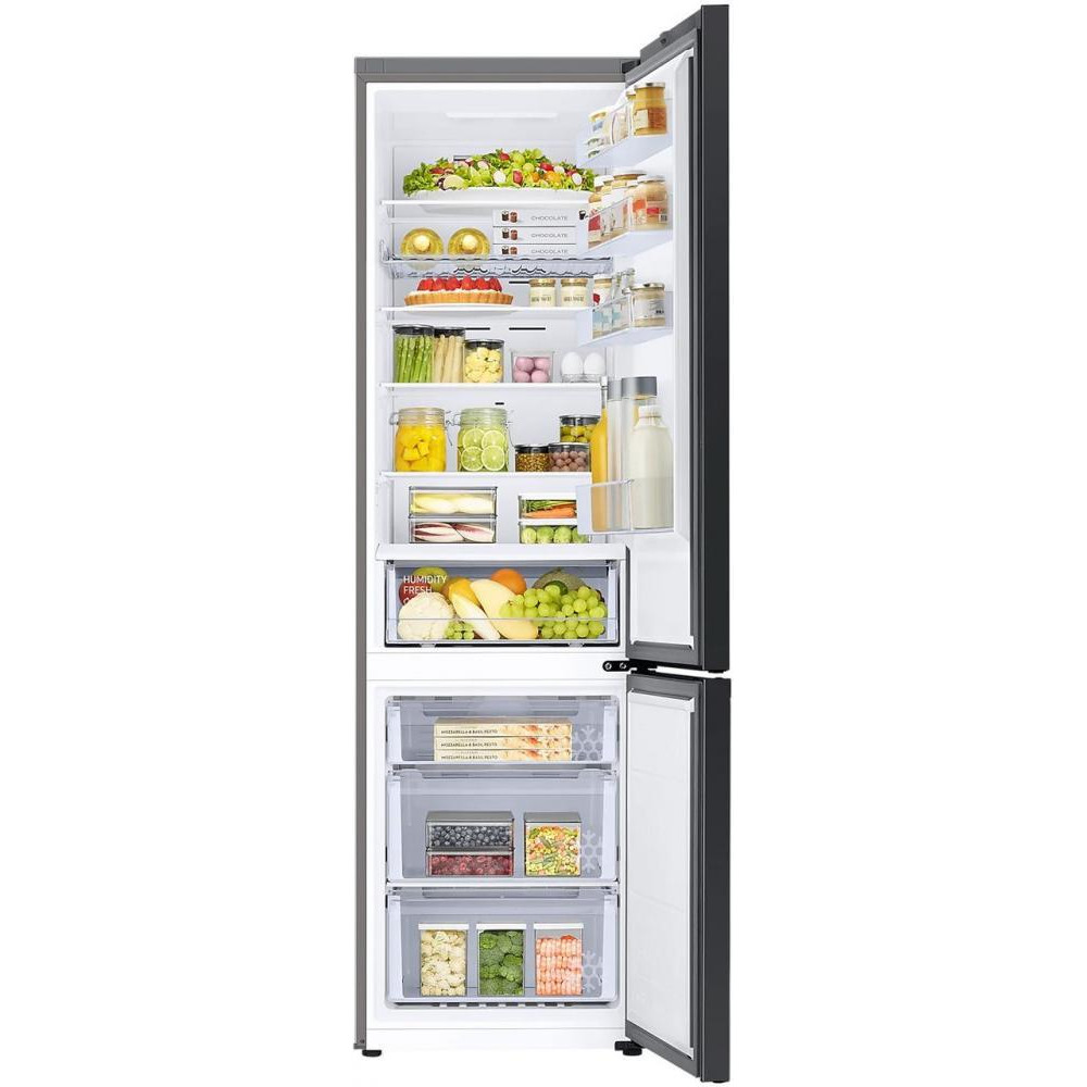 Холодильник Samsung Bespoke RB38A6B2EB1 – це стильний та функціональний пристрій з морозильною камерою, який стане чудовим доповненням до вашої кухні. Він має відмінний об'єм холодильного відділу в 276 літрів і морозильної камери – 114 літрів, що забезпечить достатньо місця для зберігання усіх ваших продуктів.