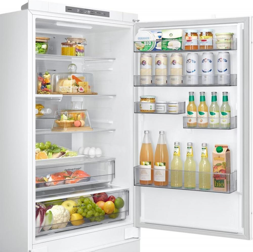 Холодильник Samsung BRB38G705EWW — оптимальний вибір для вашої кухні. Цей **холодильник з морозильною камерою** має вбудований дизайн, що дозволяє елегантно вписатися в інтер'єр. Об'єм холодильного відділення становить **289 літрів**, а морозильного — **100 літрів**, забезпечуючи простір для зберігання всіх ваших продуктів.