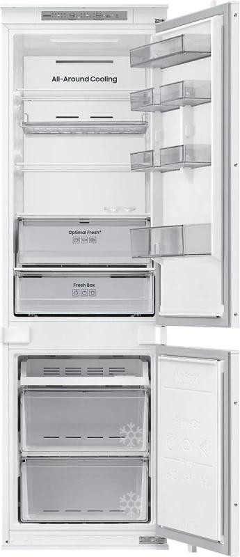 Холодильник Samsung BRB70F26C1S0 — це сучасна двокамерна модель з морозильною камерою, що вражає своєю місткістю у 275 літрів, з яких 192 літри відведені під холодильне відділення, а 72 літри — під морозильне. Розміри пристрою складають 54 x 177,5 x 55 см, що робить його ідеальним для вбудованого використання в кухнях з обмеженим простором.