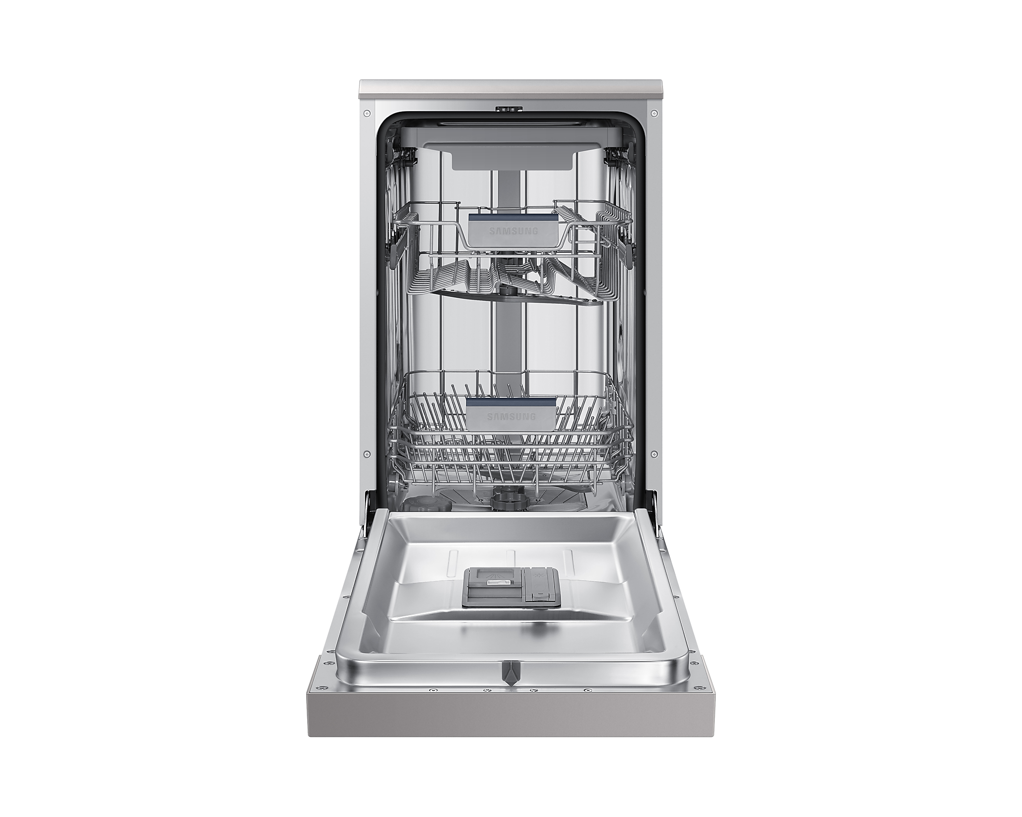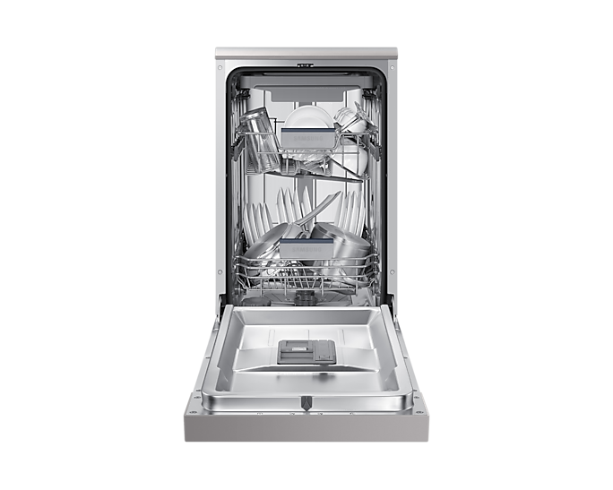 Гнучке регулювання висоти верхнього кошика за допомогою функції Auto Adjust дозволяє з легкістю розміщувати посуд будь-якого розміру. Конденсуюча система сушіння також допомагає забезпечити, що посуд виходить сухим і готовим до використання. Разом із стильним сріблястим дизайном, Samsung DW50R4050FS/WT незамінна у вашій кухні.