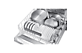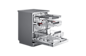 Завдяки системі Soft Railing, ви зможете без зусиль висувати важкі кошики. Особливо зручною є наявність третьої гнучкої лоткової полички, яка забезпечує додатковий простір для малих предметів, таких як столові прилади. Сам процес миття супроводжується тихою роботою з рівнем шуму всього 44 дБ.