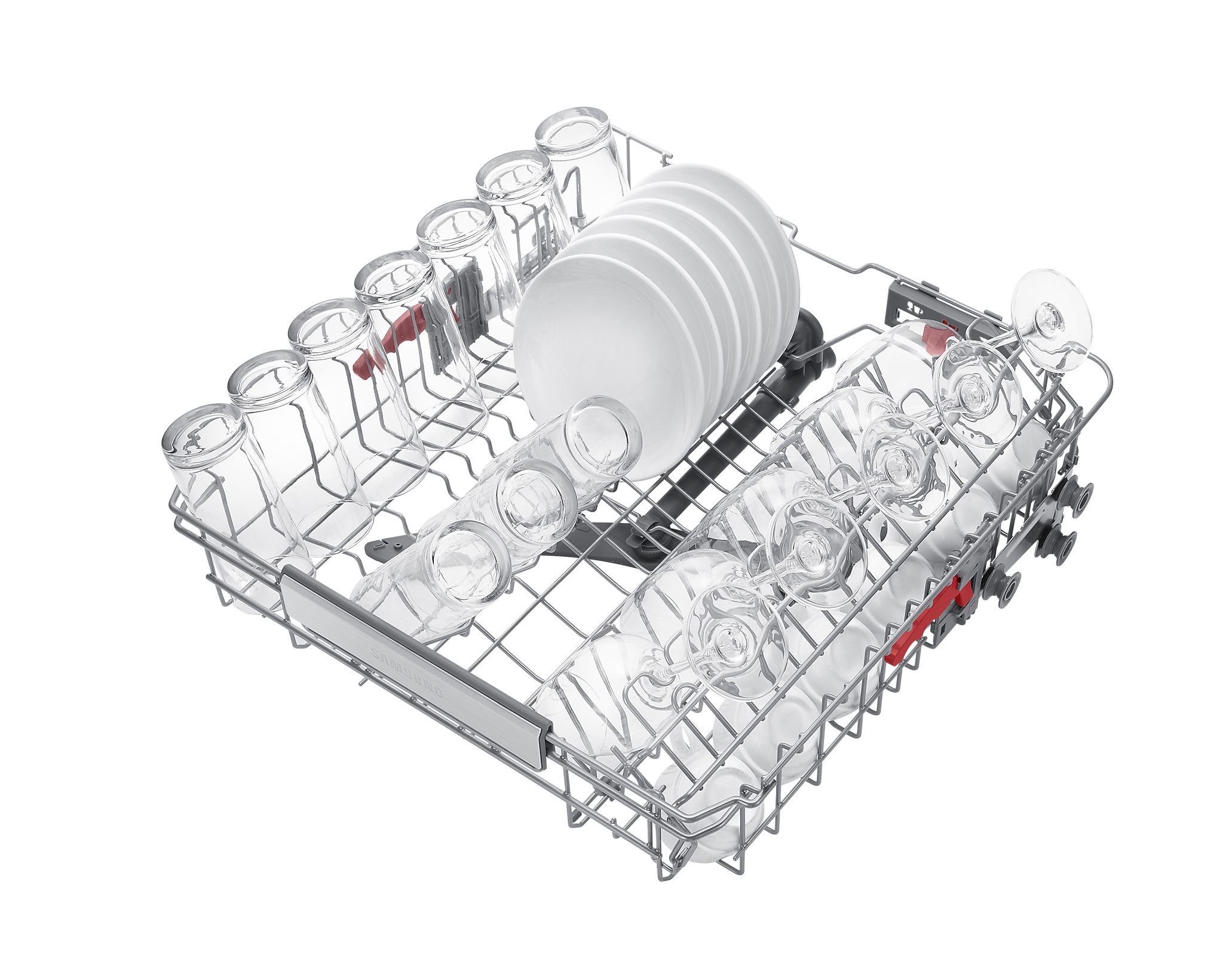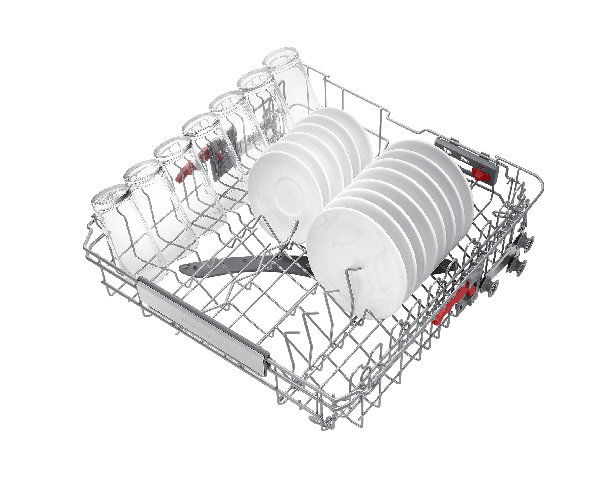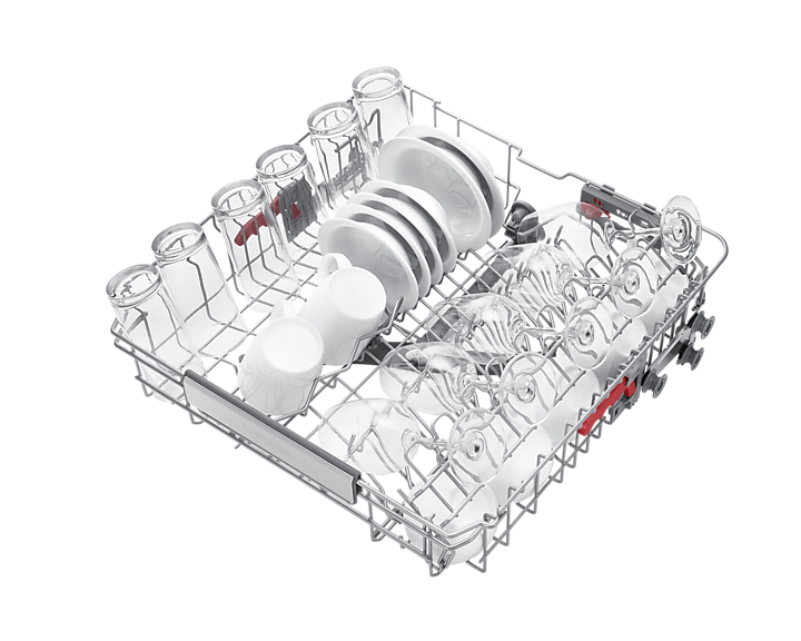 Завдяки технології Soft Rail, вивантажувати важкі кошики з посудом стало набагато легше, а система Flex Load дозволяє зручно розміщувати різноманітні вироби у верхньому кошику. Ви можете регулювати висоту верхнього кошика на 5 см, що оптимізує простір для великого посуду.