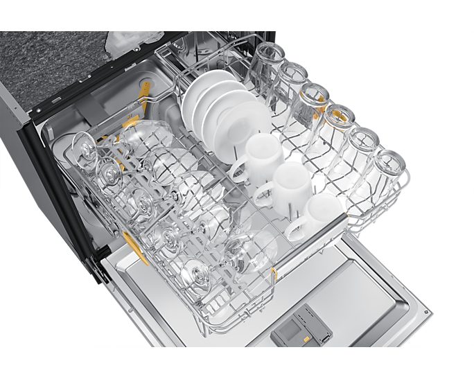 Модель має велику ємність на 14 сервізів, а також адаптивну конструкцію кошика, що дозволяє розташовувати різний посуд. Контроль за роботою можна здійснювати дистанційно через Wi-Fi та додаток SmartThings.