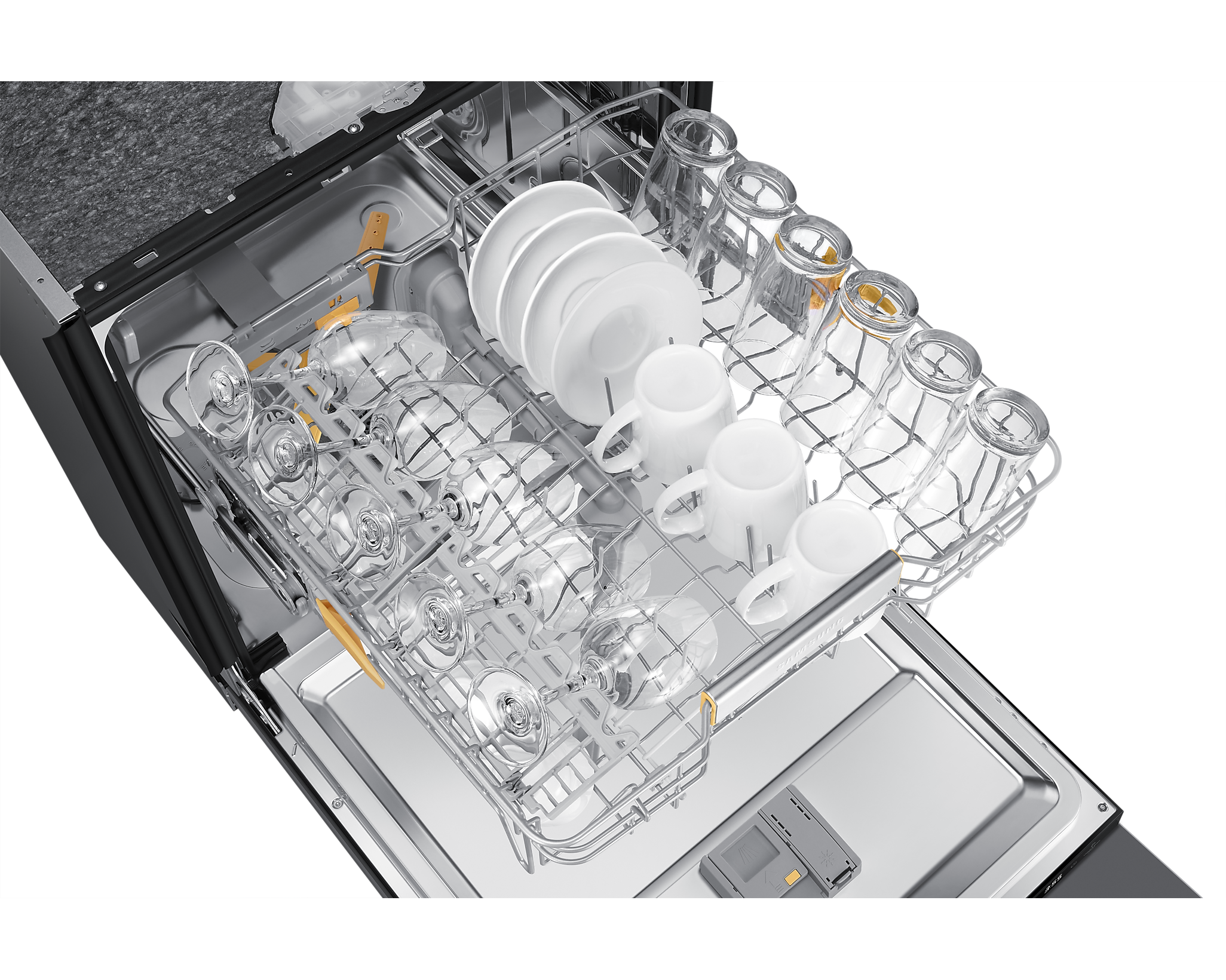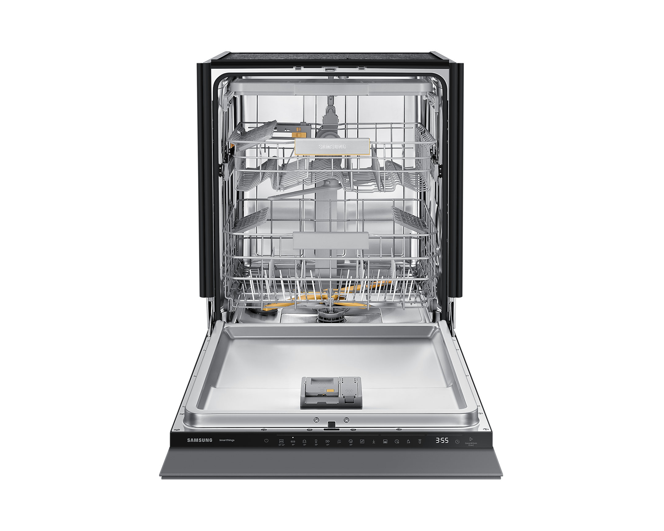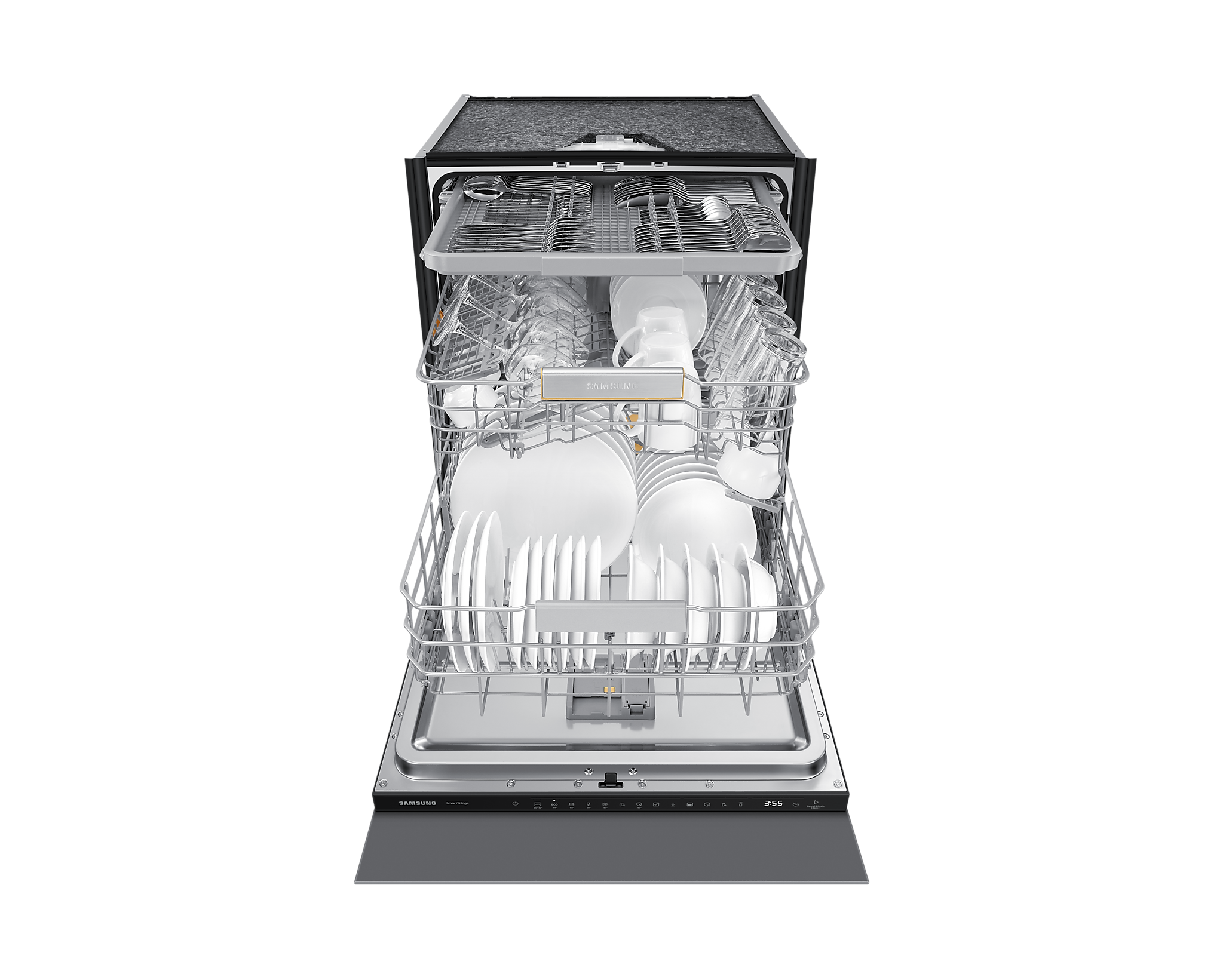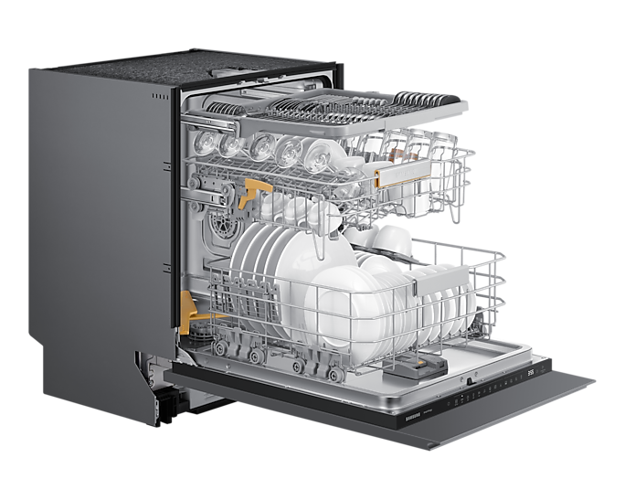 Механізм гнучкого кошика дозволяє регулювати площу для різного посуду, роблячи процес завантаження простішим і зручнішим. Крім того, модель має wi-fi підключення та інтеграцію з додатком SmartThings, що дозволяє управляти нею з будь-якої точки.