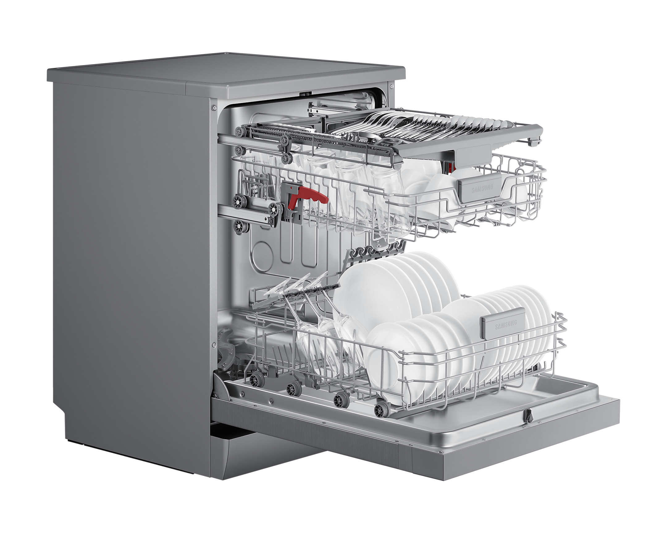 Samsung DW60CG550FSRET - це сучасна посудомийна машина, яка об'єднує елегантний мінімалістичний дизайн з інноваційними технологіями для ефективного очищення вашого посуду. Вона вміщує до 14 комплектів посуду, що робить її чудовим вибором для будь-якої родини.