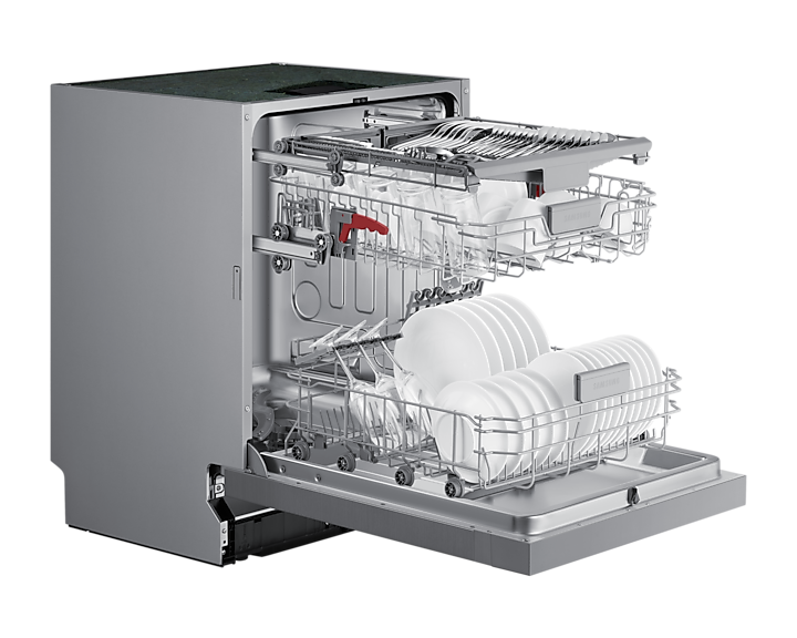 Завдяки гнучкому дизайну кошиків, ви зможете легко налаштувати площу для будь-якого виду посуду. Верхній кошик регулюється по висоті для великого посуду, а третя шухляда пропонує зручне місце для столових прибір.