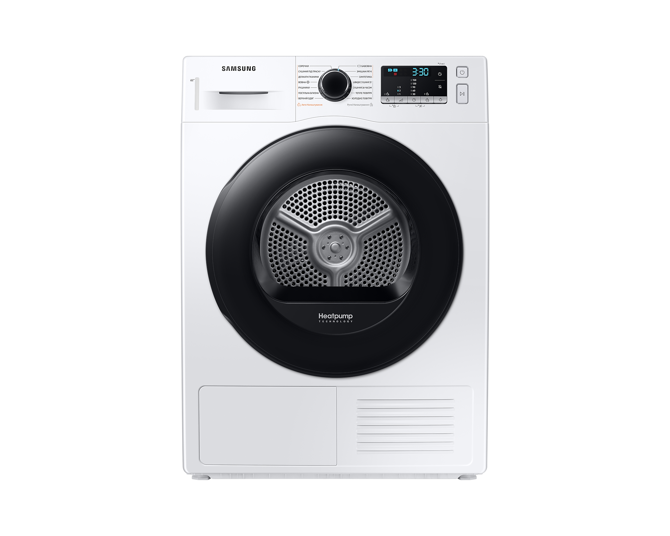 А також пральна машина оснащена сушильною машиною DV90TA040AE/UA з технологією теплового насоса, яка пропонує енергоефективний та бережливий спосіб сушіння одягу, що ефективно захищає довкілля, використовуючи менше електроенергії. Крім того, функція "Захист від зморшок" допоможе уникнути зморшок на вашому одязі, а функція "Оптимальне сушіння" дозволяє оптимізувати ефективність сушіння без зусиль.
