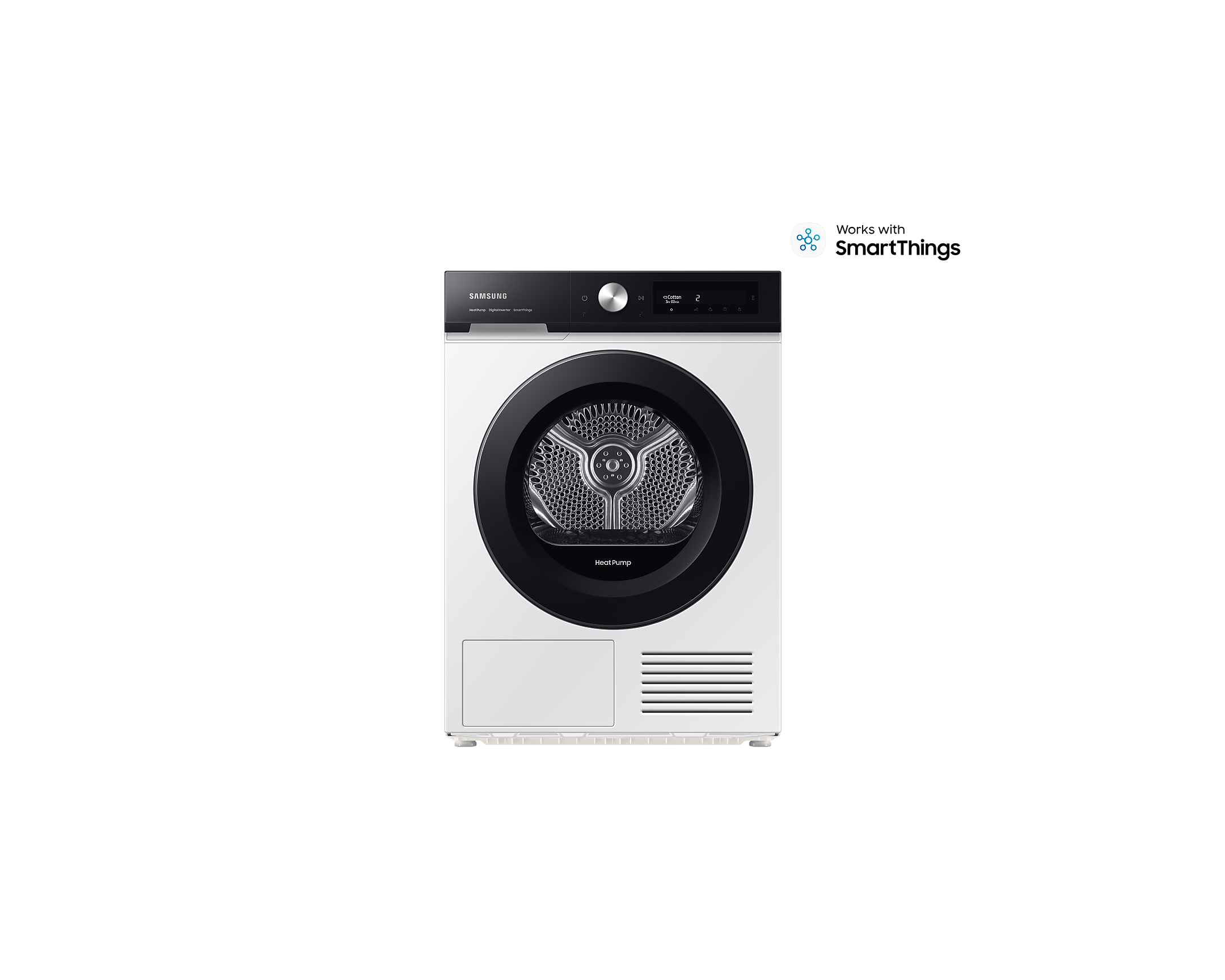 Сушильна машина Bespoke DV90BB5245AEUA 9 кг також відома своєю ефективністю, тихою роботою та зручною системою управління. Технологія Air Wash освіжує одяг без використання мийних засобів, а швидке сушіння 35' дозволяє висушити невелику кількість білизни за 35 хвилин. Режим «Одяг без складок» забезпечує збереження висушеного одягу без складок, що зазвичай виникають під час сушіння. Технологія Digital Inverter забезпечує тривалу роботу та ефективне сушіння з мінімальним рівнем шуму.