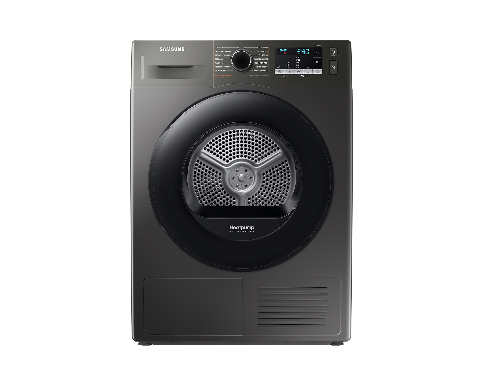Сушильна машина DV90TA040AX/UA має клас енергоефективності A+++ з технологією теплового насоса, що забезпечує економію електроенергії. Функція «Захист від зморшок» допомагає уникнути зморшок на одязі, а «Оптимальне сушіння» забезпечує оптимальну ефективність сушіння без особливих зусиль.