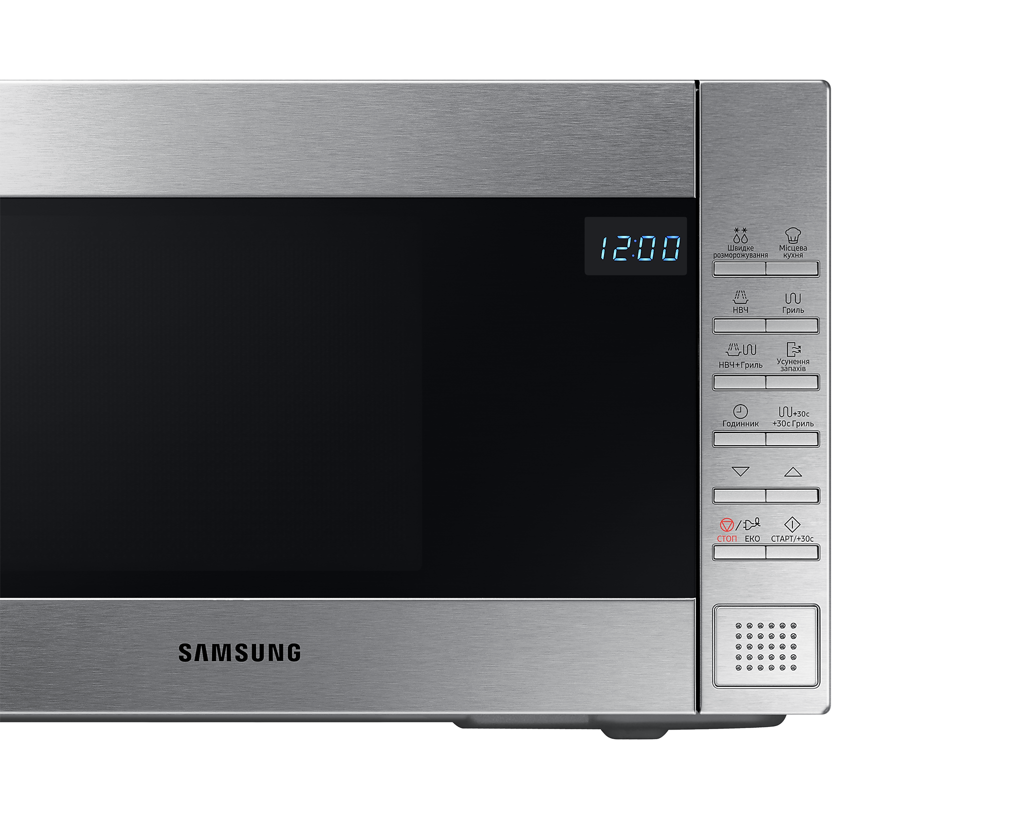 Мікрохвильова піч Samsung GE88SUT/UA - це поєднання стильного дизайну та інноваційних технологій для зручності використання. Завдяки потужності мікрохвиль 800 Вт та гриля 1100 Вт ви зможете швидко приготувати будь-яку страву, а об'єм у 23 літри дозволить легко вмістити сімейні порції.