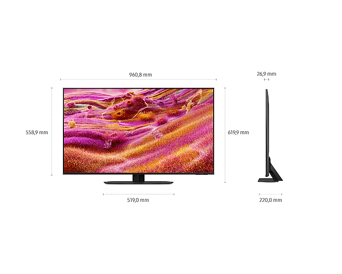 Samsung GQ43QN90F також має стильний рамковий дизайн та енергоефективність класу G, що дозволяє зменшити витрати на електроенергію. Цей телевізор не тільки прикрасить ваш інтер'єр, але і забезпечить чітке та яскраве зображення улюблених фільмів та ігор.