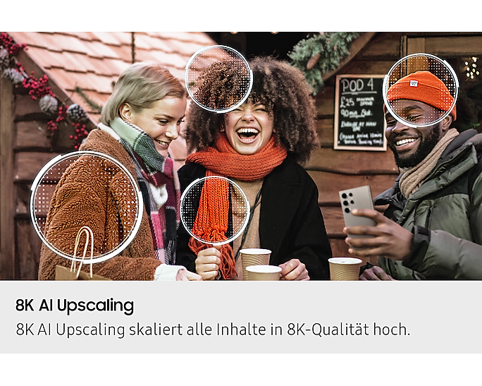 Крім того, телевізор має **Quantum Matrix Technology Pro**, що значно покращує контрастність та деталі. Зображення виглядає ще яскравіше завдяки **QuantumDot** технології. Для ще більш захоплюючого перегляду, підтримується **HDR10** і **Neo Quantum HDR 8K Pro**. А відтворення звуку виходить на новий рівень завдяки **Dolby Atmos** та **Object Tracking Sound**, що дозволяє відчути звукове оточення як ніколи раніше.