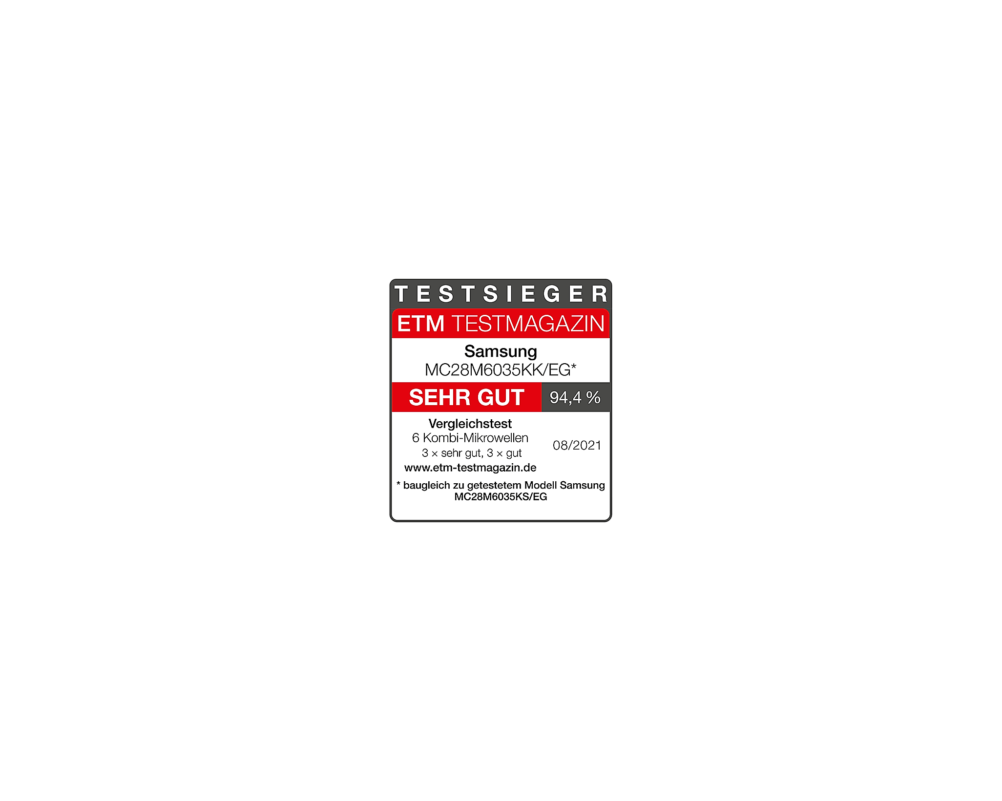 Завдяки широкому спектру автоматичних програм, включаючи Healthy Cooking та Auto Reheat/Cook, приготування здорової їжі стало ще простішим. Модель Samsung MC28M6035KK/EG — це практичний та ефективний вибір для кожної кухні!