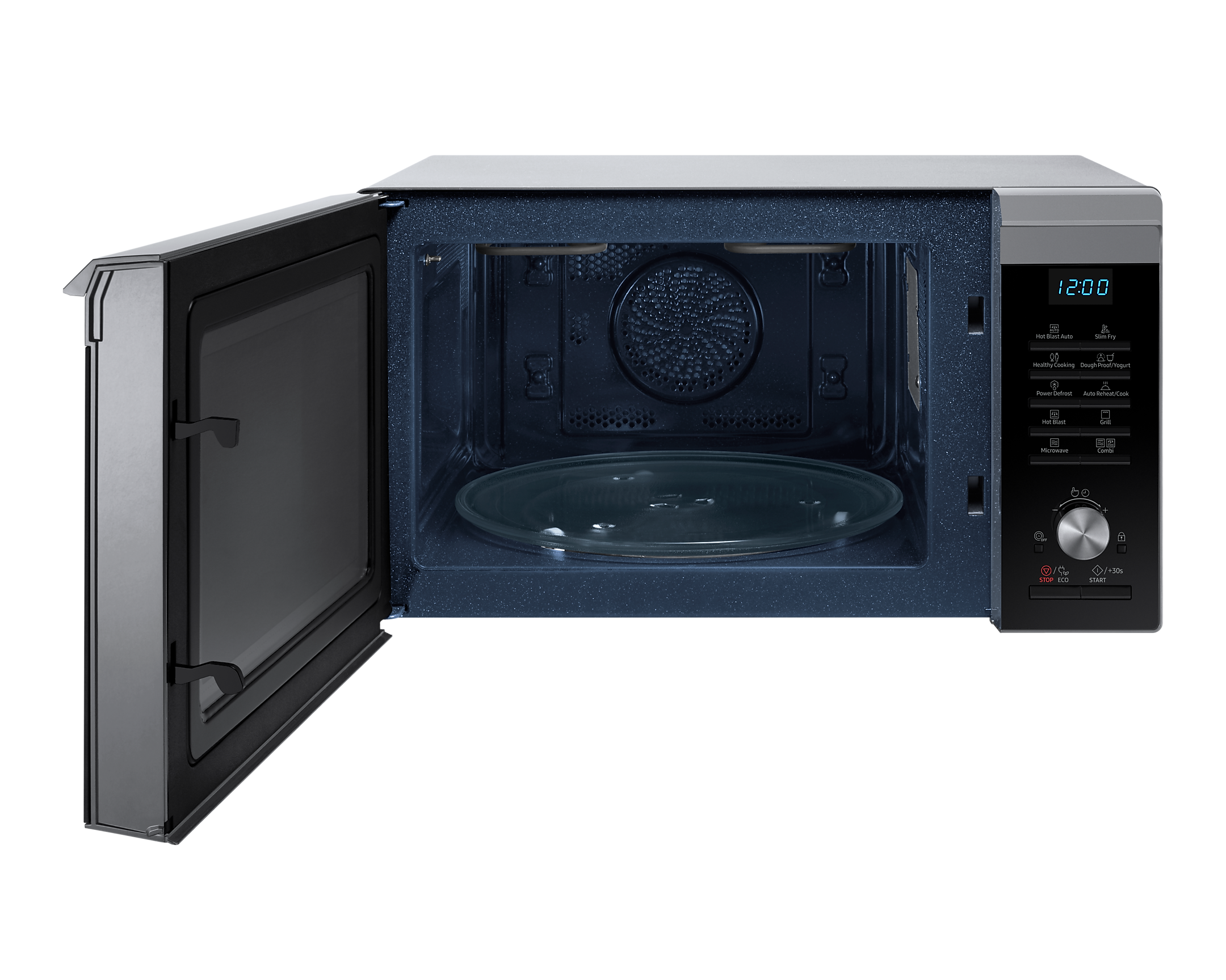 Основною перевагою є технологія Hot Blast™, що забезпечує рівномірне приготування та ідеальний результат. Завдяки потужному струменю гарячого повітря, їжа виходить хрусткою зовні та соковитою всередині, скорочуючи час готування до 50% у порівнянні з традиційними мікрохвильовими печами.