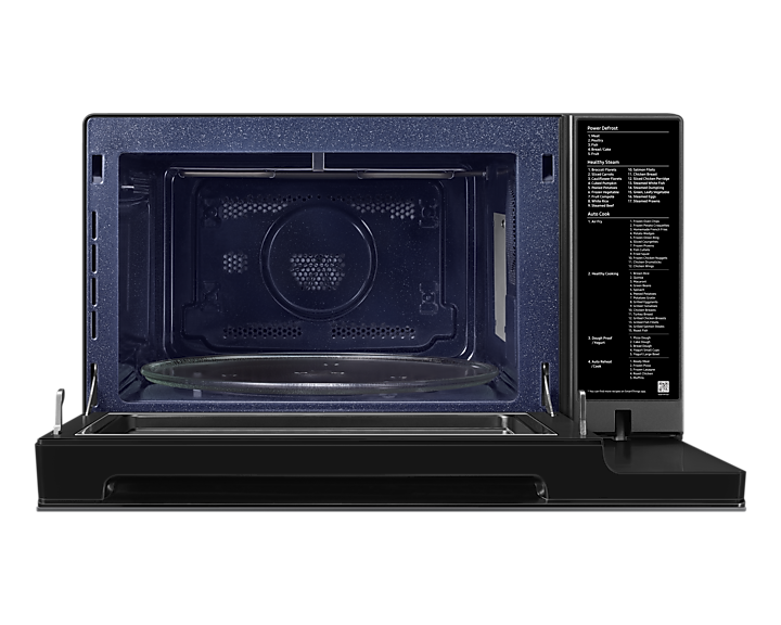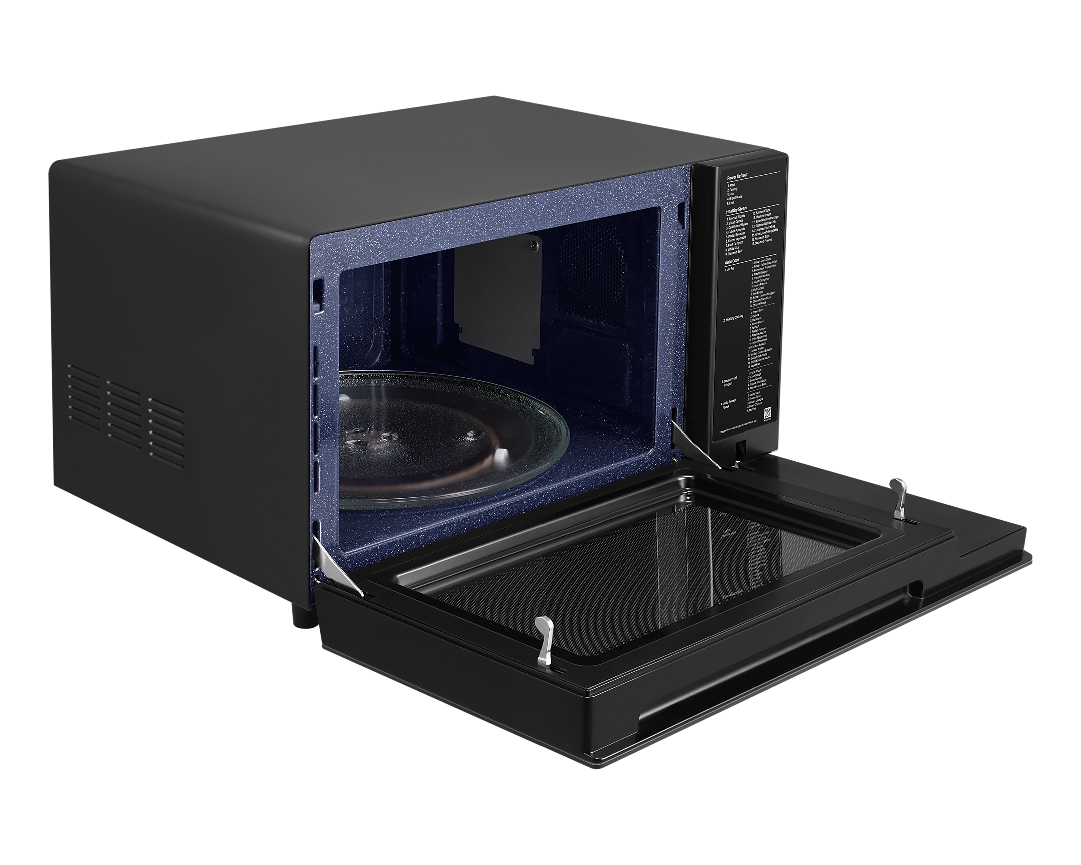 Внутрішнє покриття мікрохвильової печі виконане з керамічної емалі, що забезпечує легкість у чищенні та протистоїть появі бактерій, гарантуючи 99,9% захисту. Піч також функціонує в режимі приготування на парі, дозволяючи зберігати максимальну кількість корисних речовин у приготованих стравах.