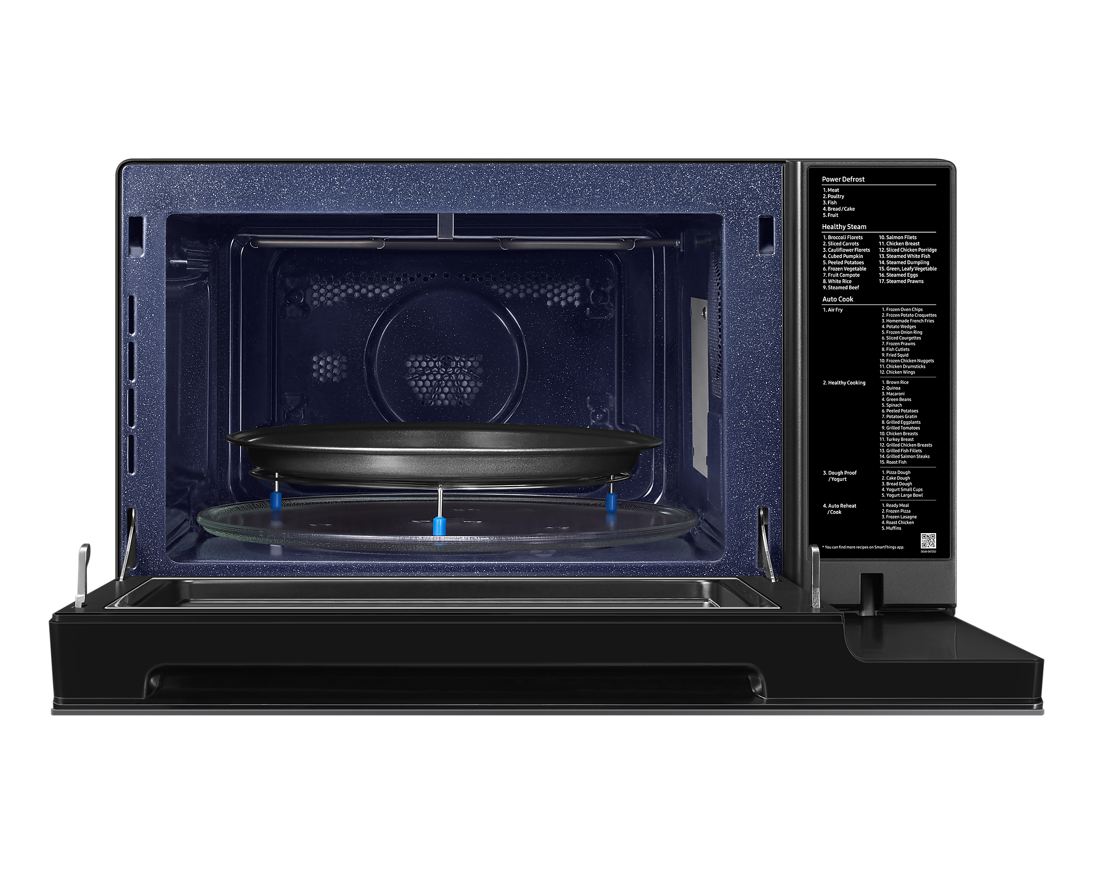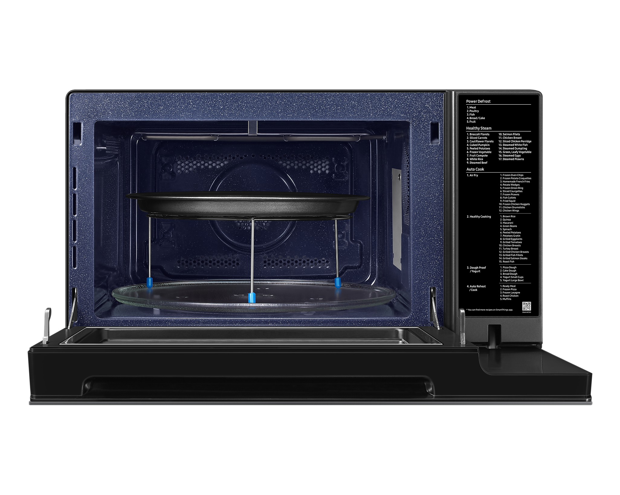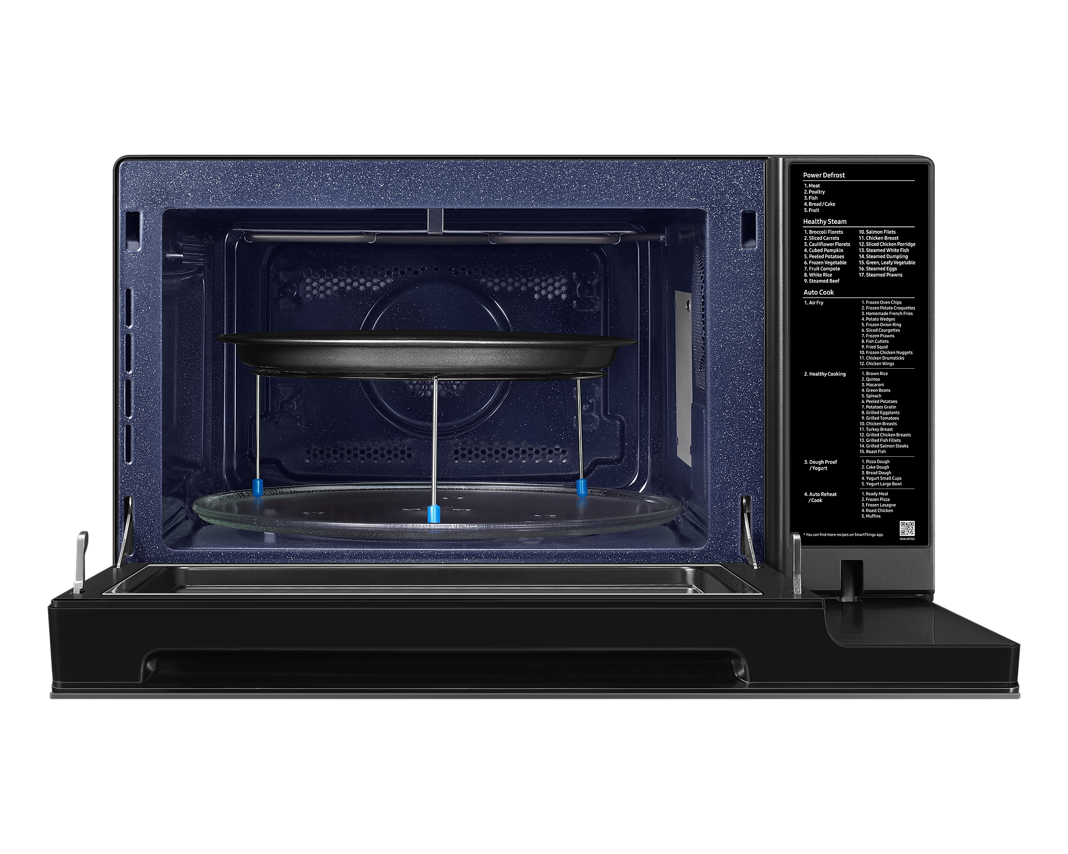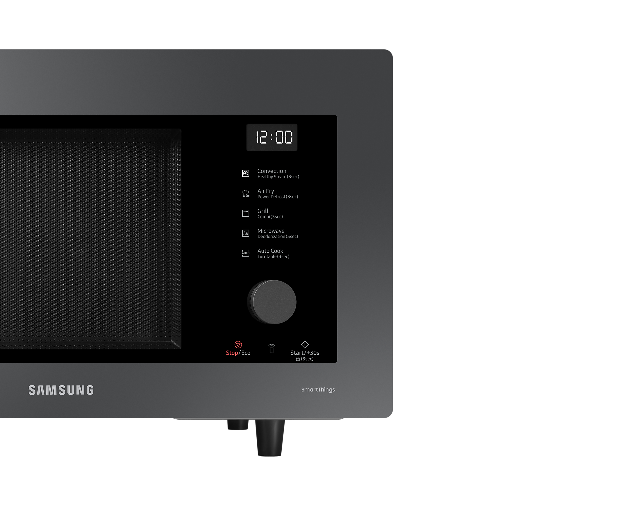 Крім стандартних функцій, мікрохвильова піч також має режим Air Fry, що дозволяє готувати хрусткі страви з мінімумом жиру, на відміну від традиційного смаження. Завдяки Smart Control, ви можете віртуально керувати побутовим приладом за допомогою смартфона, отримуючи зміни налаштувань в реальному часі та доступ до особистих рецептів через застосунок SmartThings.