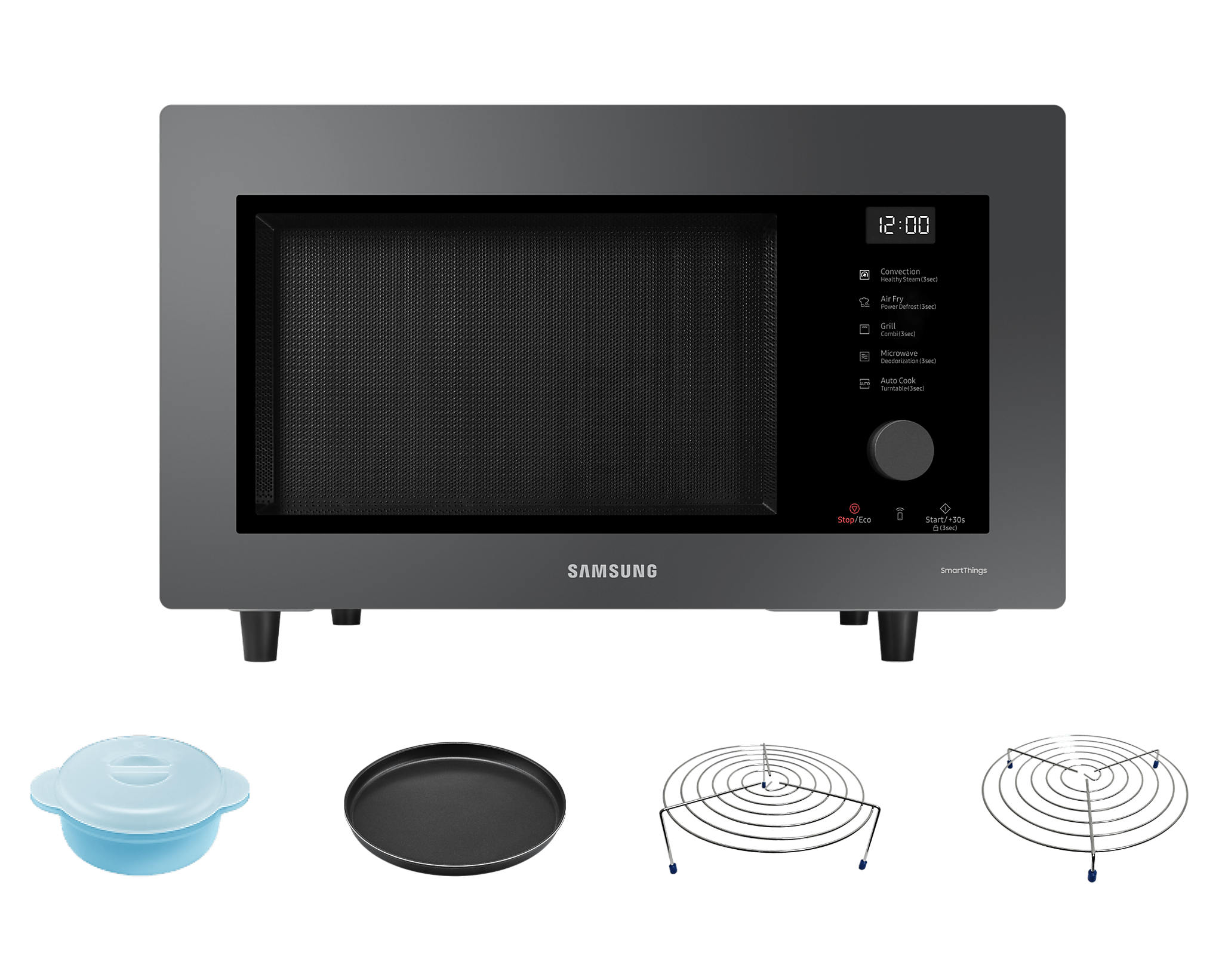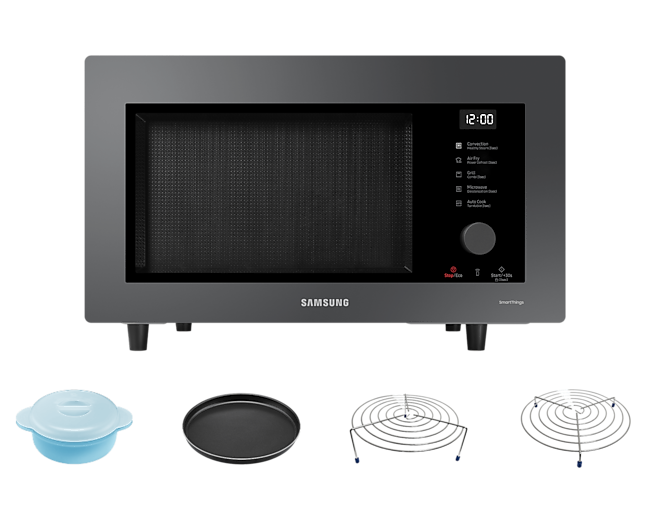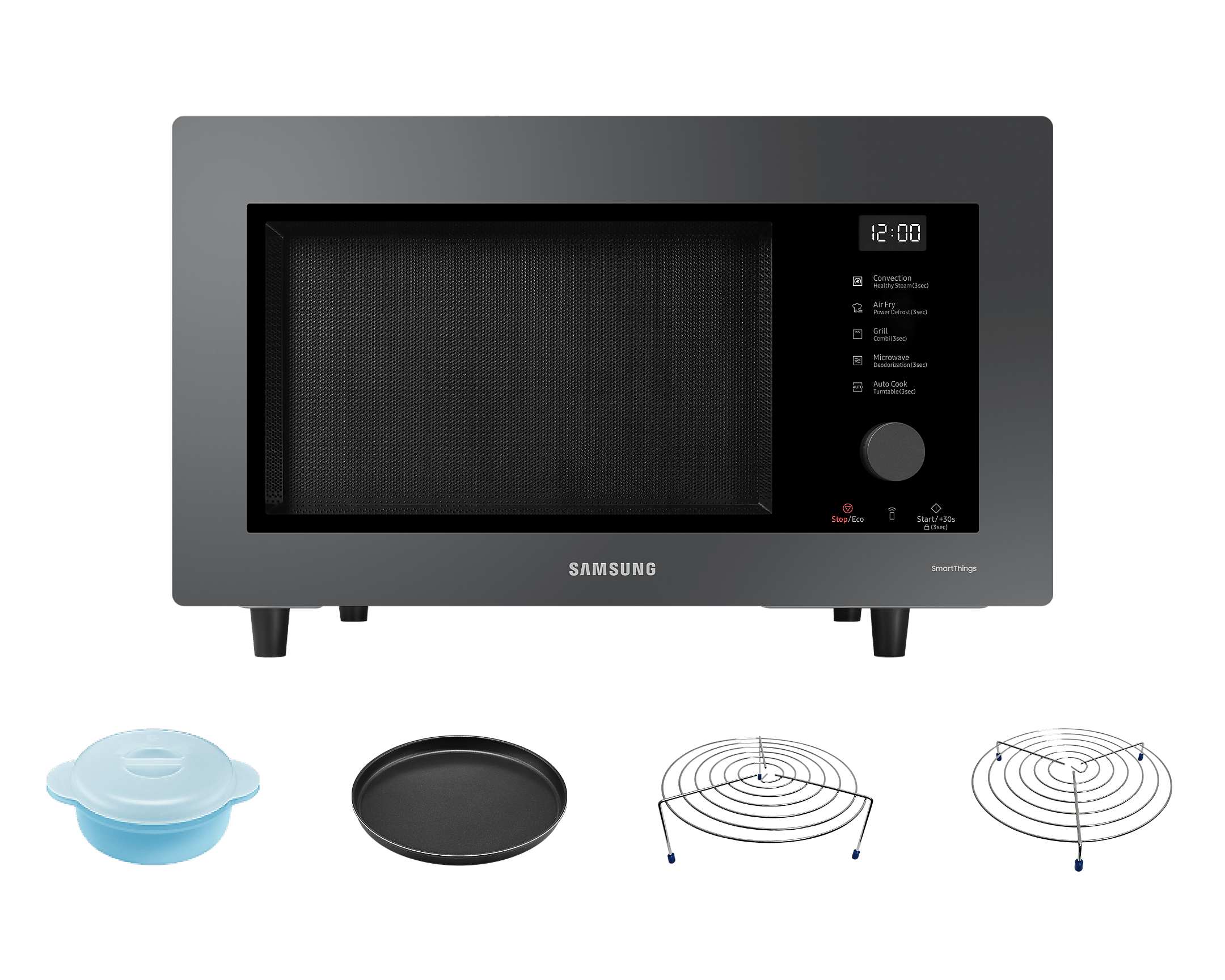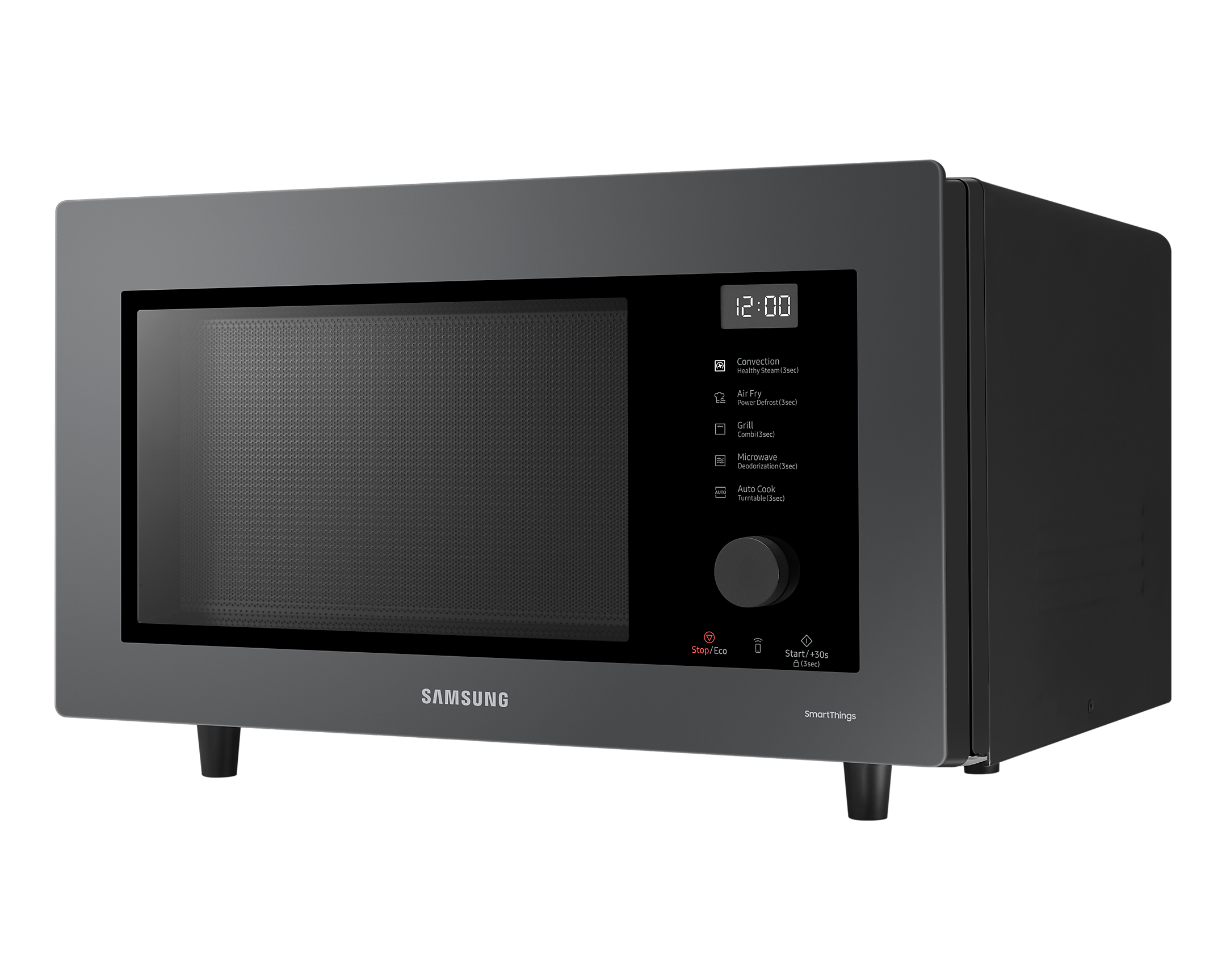 Крім стандартних функцій, мікрохвильова піч також має режим Air Fry, що дозволяє готувати хрусткі страви з мінімумом жиру, на відміну від традиційного смаження. Завдяки Smart Control, ви можете віртуально керувати побутовим приладом за допомогою смартфона, отримуючи зміни налаштувань в реальному часі та доступ до особистих рецептів через застосунок SmartThings.
