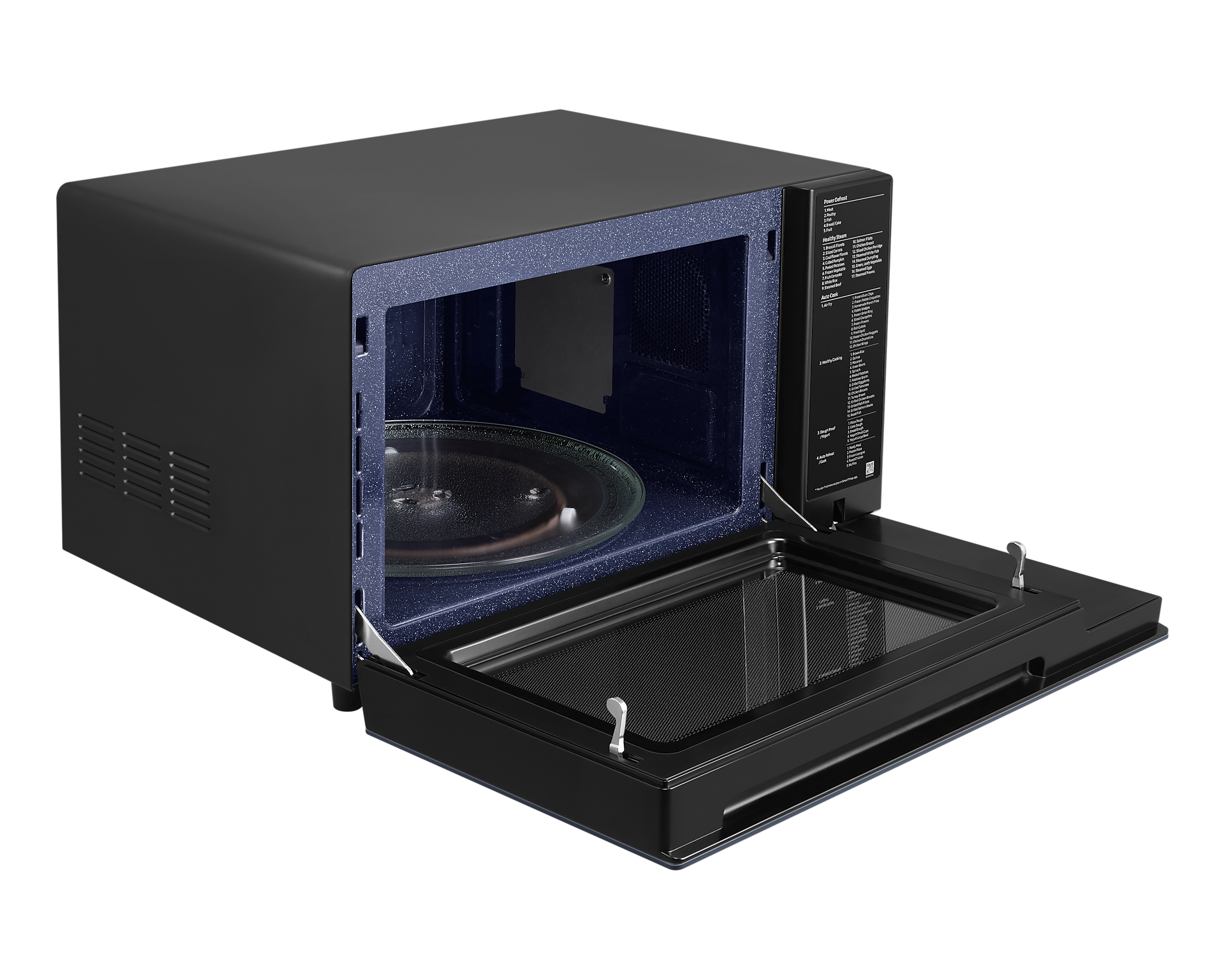 Мікрохвильова піч Samsung MC32DB7746KDE1 - це всеосяжне рішення для вашої кухні, яке об'єднує в собі декілька функцій в одному пристрої. Завдяки своїй потужності в 900 Вт і об'єму камери в 32 л, ви зможете швидко та ефективно приготувати ваші улюблені страви. Піч має можливість Air Fry, що дозволяє смажити їжу з мінімальною кількістю масла, зберігаючи при цьому чудовий смак та текстуру.