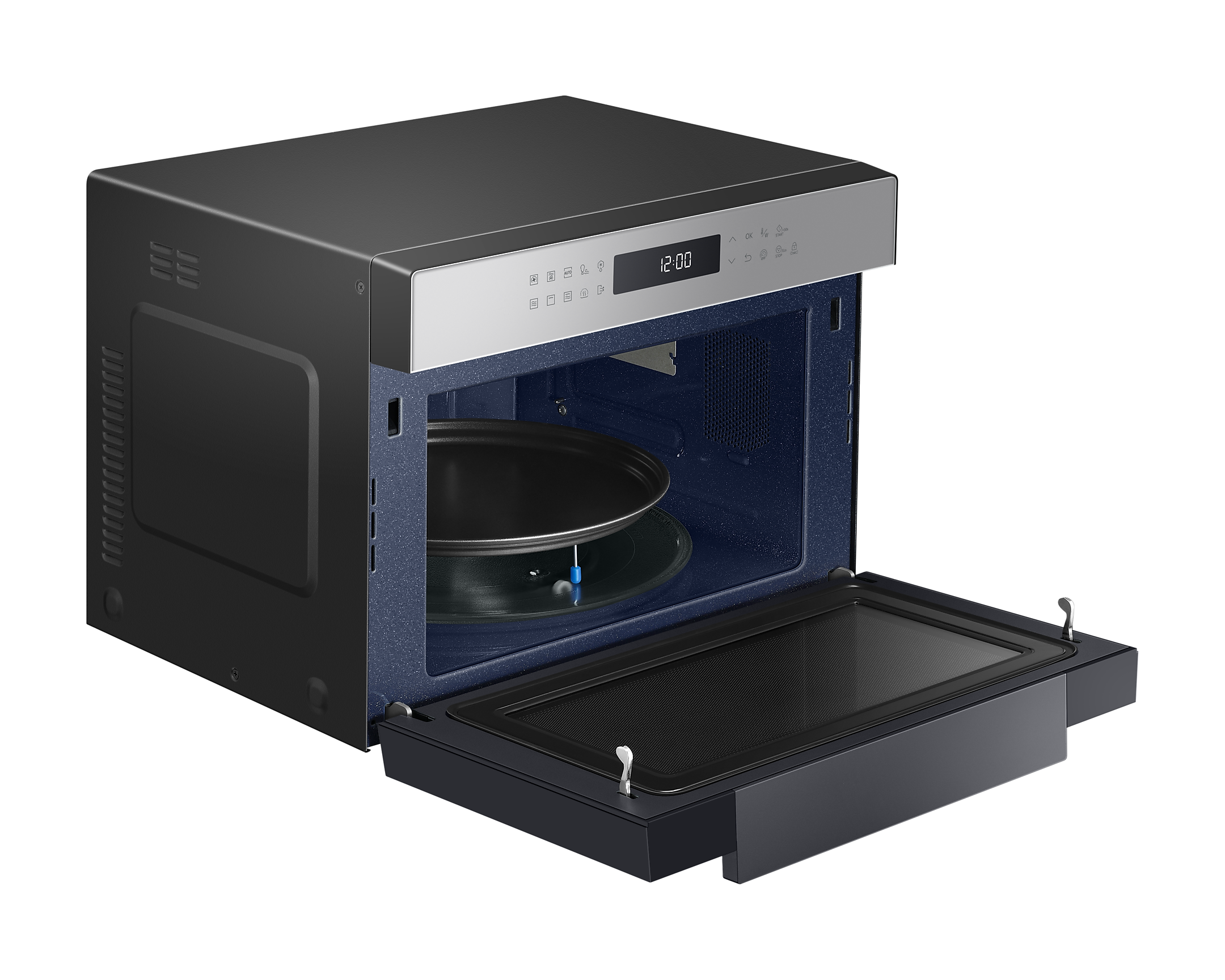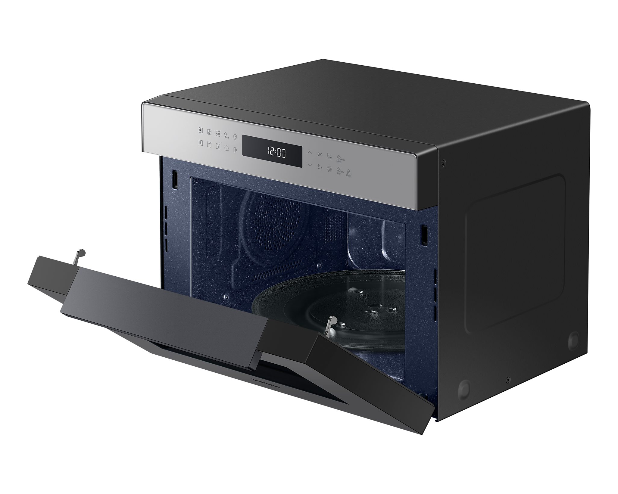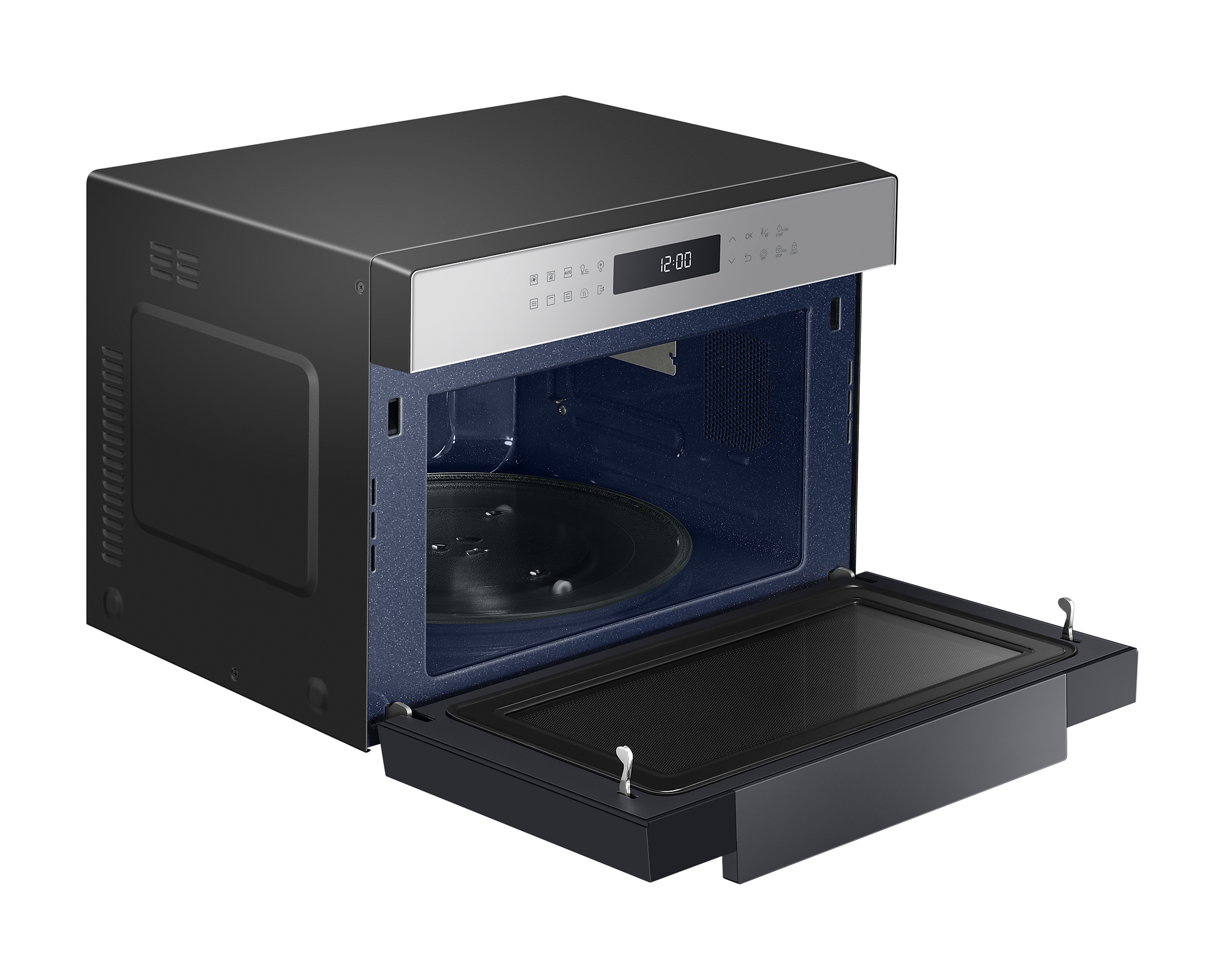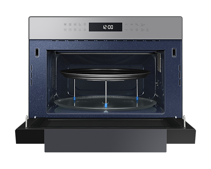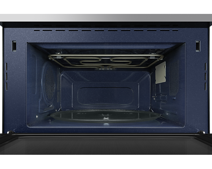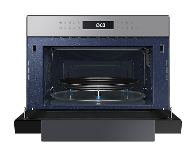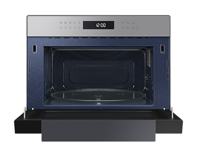 Для зручності користування передбачена сенсорна панель BESPOKE Design з LED-дисплеєм, що легко читається. Внутрішня поверхня з керамічної емалі не лише легко очищається, але й є стійкою до подряпин і забруднень. Мікрохвильова піч також оснащена автоматичними програмами для здорового приготування їжі, що робить процес ще простішим.