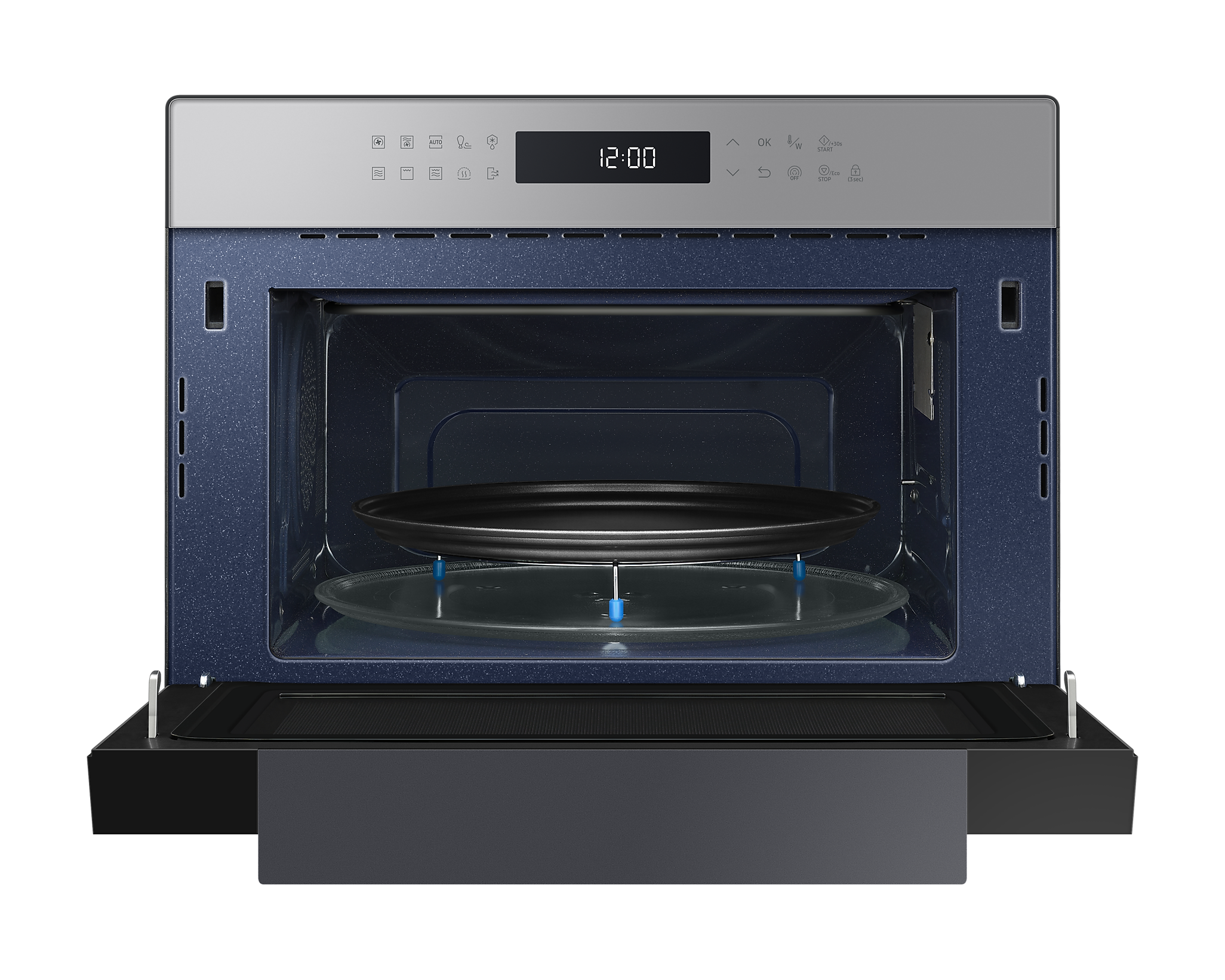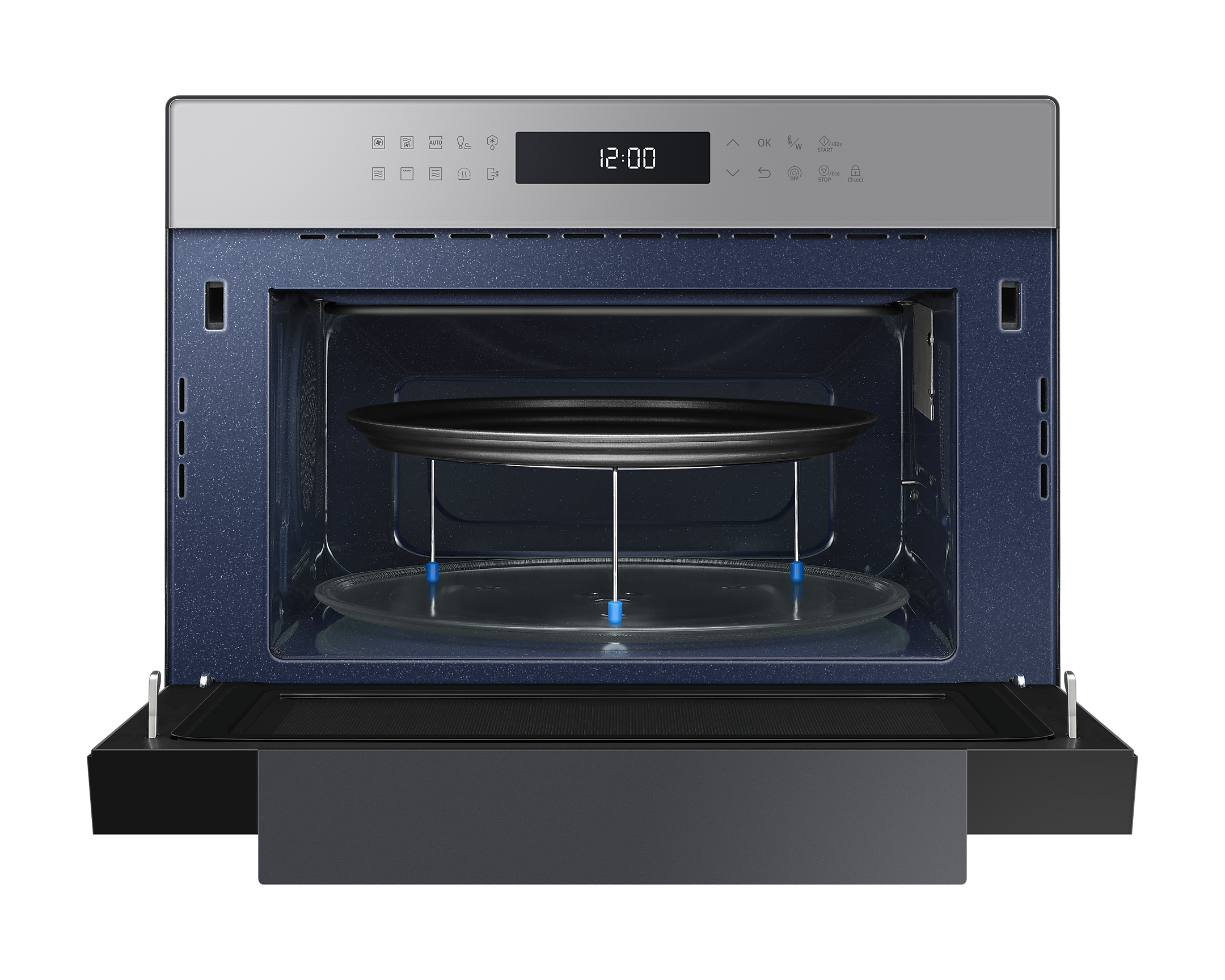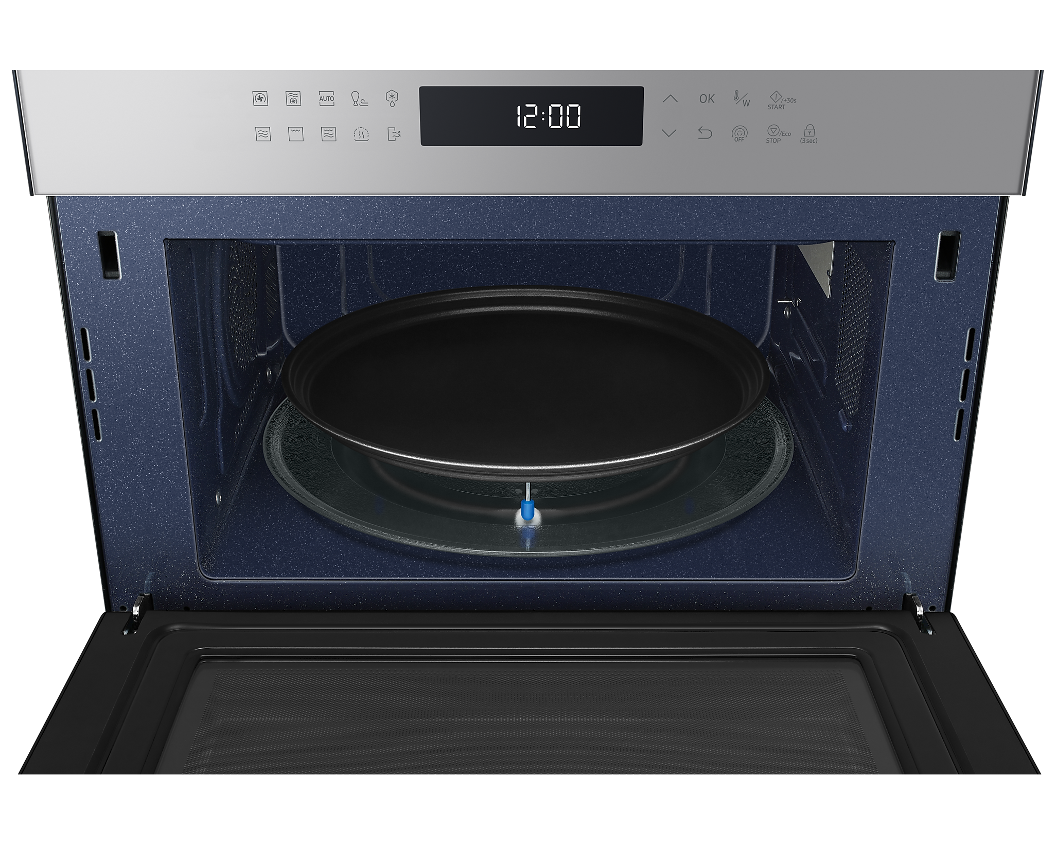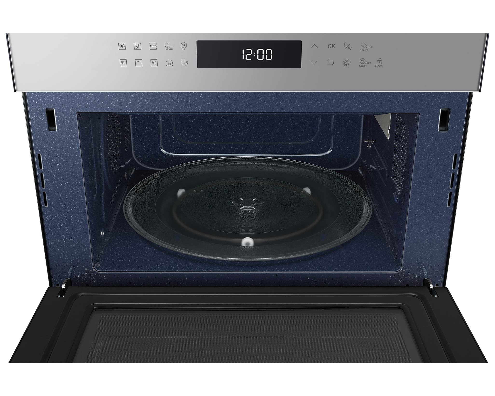 Для зручності користування передбачена сенсорна панель BESPOKE Design з LED-дисплеєм, що легко читається. Внутрішня поверхня з керамічної емалі не лише легко очищається, але й є стійкою до подряпин і забруднень. Мікрохвильова піч також оснащена автоматичними програмами для здорового приготування їжі, що робить процес ще простішим.