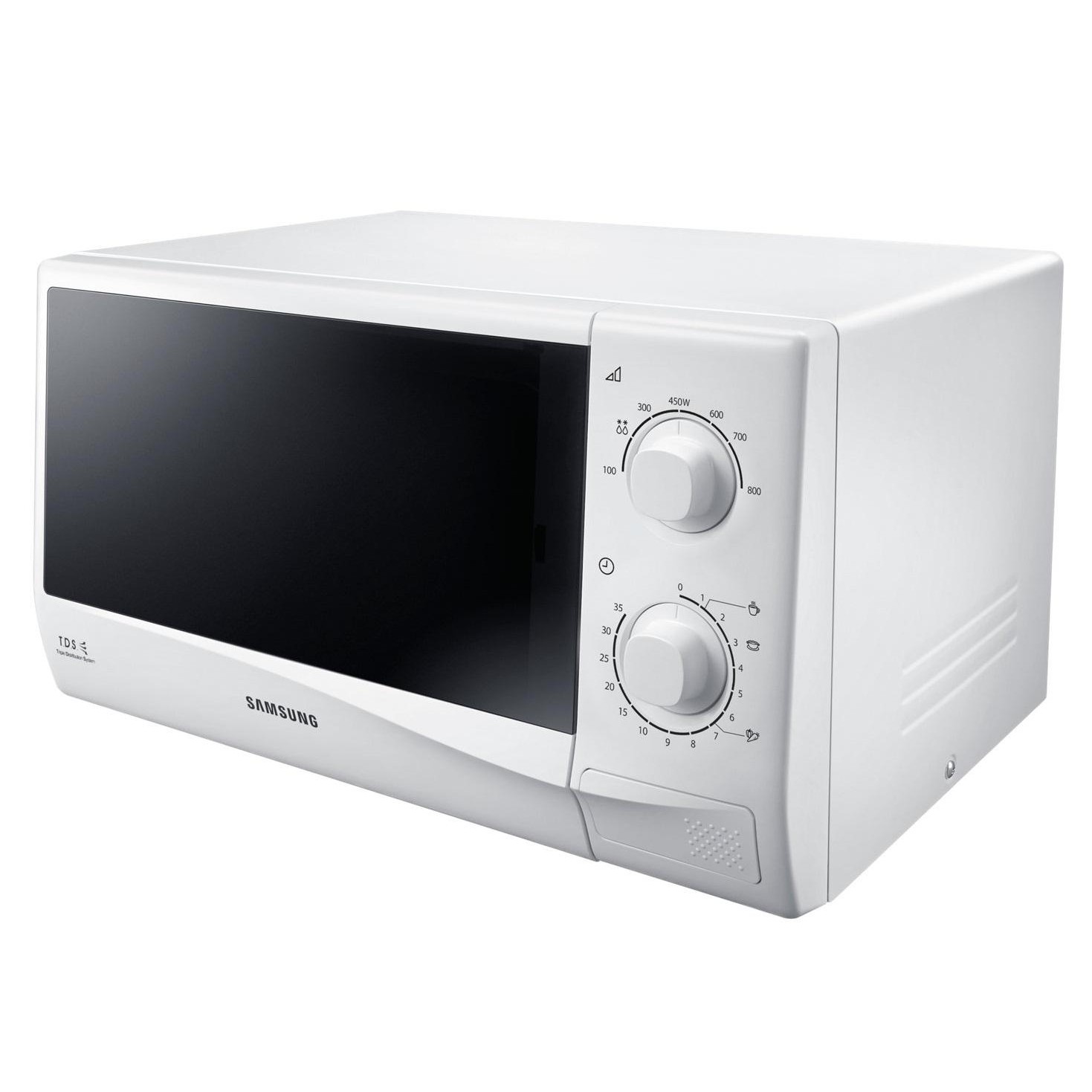 Мікрохвильова піч має розміри **48,9 x 27,5 x 36 см** і відрізняється стильним білим кольором, що доповнить будь-який інтер’єр. Засіб відкриття дверцят - кнопка, що робить використання максимально комфортним. **Triple Distribution System** забезпечує рівномірний розподіл мікрохвиль, а також скорочує час приготування до мінімуму.