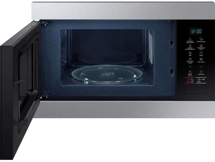 Мікрохвильова піч Samsung MG22M8074AT – це ідеальне рішення для сучасної кухні, що поєднує в собі функції мікрохвильовки та грилю. Її об'єм внутрішньої камери складає 22 літри, а діаметр поворотного столу досягає 25,5 см, що забезпечує комфортне приготування страв навіть для великої родини.