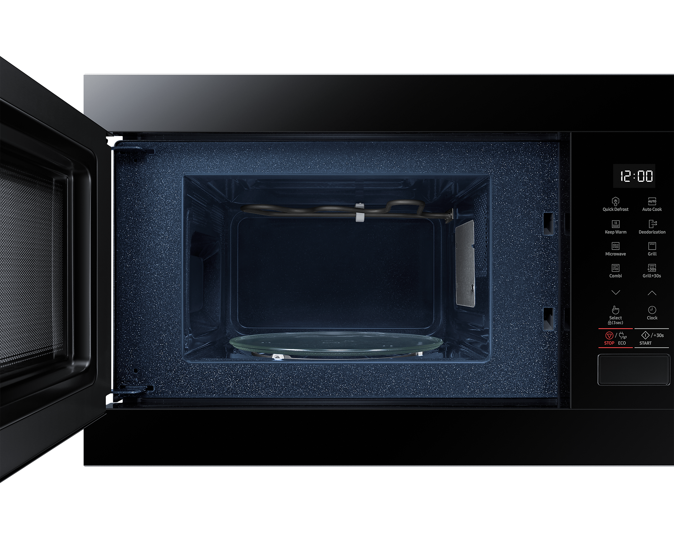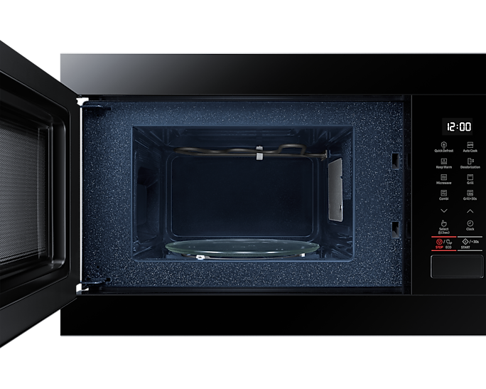 Мікрохвильова піч Samsung MG22T8254AB/E1 – це сучасний пристрій, який забезпечує швидкий та зручний процес приготування їжі. Задовольняючи всі ваші кулінарні потреби, ця модель має об'єм 22 літри та потужність у 850 Вт, що дозволяє легко і швидко розігрівати, готувати та розморожувати продукти.