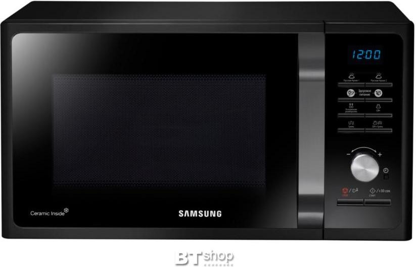 Крім того, біокерамічна емаль, застосована для покриття камери, легко чиститься і не вимагає спеціального догляду. Завдяки тактовому типу управління і зручному дисплею, користуватися Samsung MG23F302TAK буде просто і зручно.