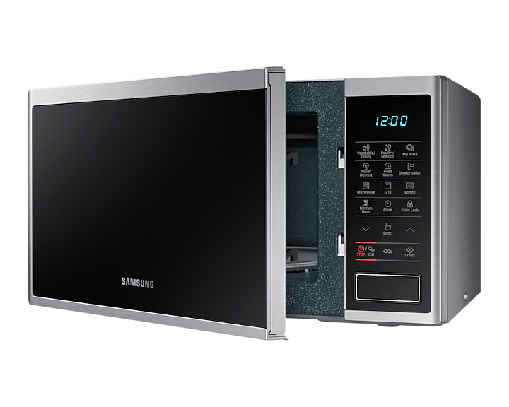 Мікрохвильова піч Samsung MG23J5133AT/EG - це сучасний прилад, який поєднує в собі стильний дизайн та функціональність. З об’ємом камери в 23 літри та потужністю микроволнового випромінювання до 800 Вт, ця мікроволновка ідеально підходить для будь-якої кухні.