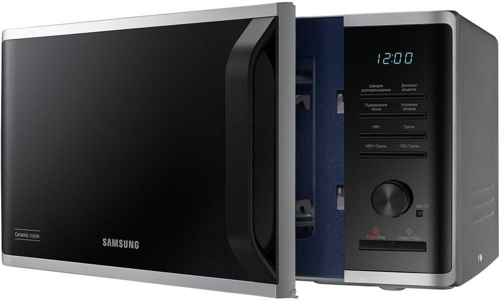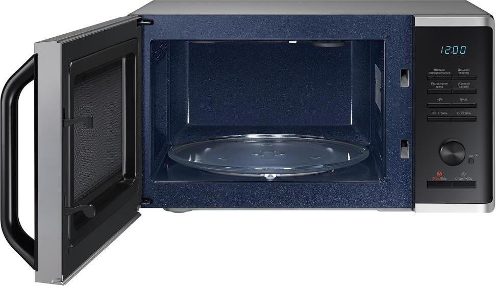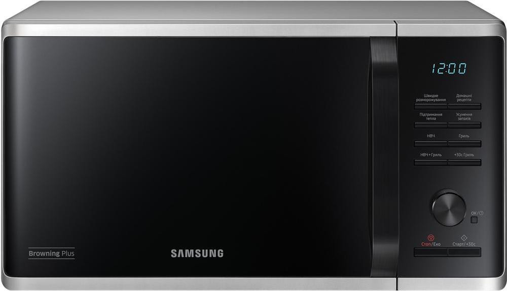 Мікрохвильова піч Samsung MG23K3515AS — це надійний вибір для сучасного дому. Виконана в стильному кольорі нержавіючої сталі, вона стане елегантним доповненням вашої кухні. Об'єм робочої камери складає 23 літри, що робить її ідеальною для приготування страв для сім'ї або гостей.