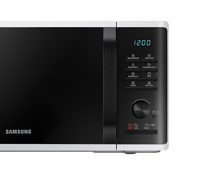 Модель також має антимікробне керамічне покриття внутрішньої камери, яке забезпечує легкість у догляді та стійкість до подряпин. З мікрохвильовою піччю Samsung MG23K3515AW/EG приготовлення улюблених страв стало ще доступнішим і комфортнішим.