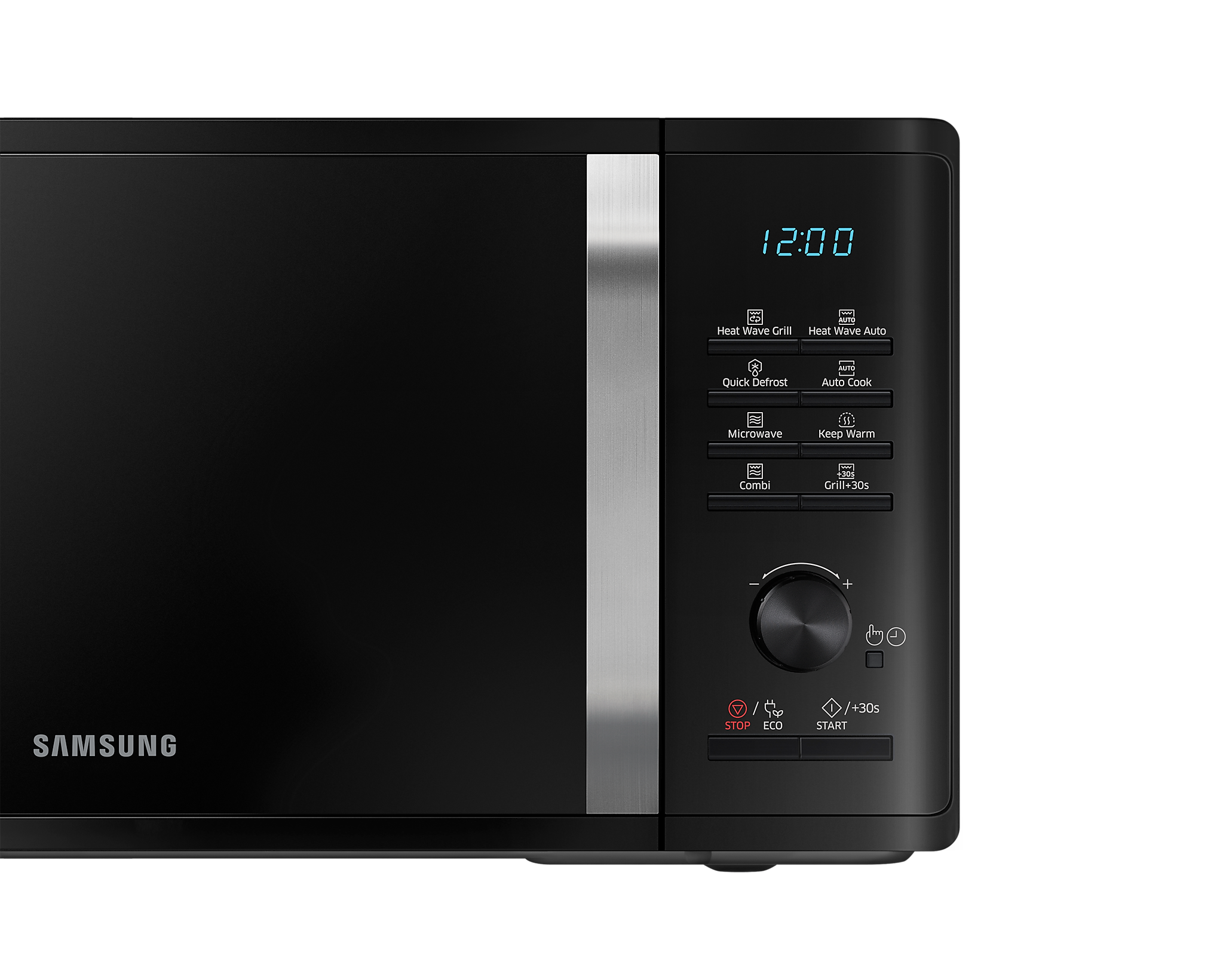 Мікрохвильова піч Samsung MG23K3575AK/EO має стильний чорний дизайн, інтуїтивно зрозуміле електронне управління і можливість управління за допомогою поворотного механізму. Завдяки потужності 800 Вт гриля та 1250 Вт загальної потужності, ця модель стане вашим надійним помічником на кухні, що допоможе швидко та легко готувати улюблені страви.