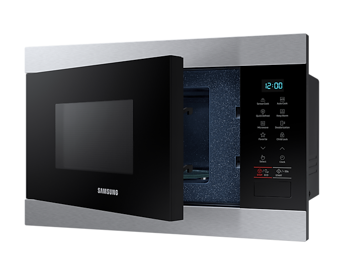 Габарити цього пристрою становлять 595 x 380 x 320 мм, що дозволяє без проблем інтегрувати його в кухонні меблі. Мікроволнова піч Samsung MS22M8074AT/EG має стильний естетичний вигляд, завдяки якому вона ідеально впишеться у будь-який сучасний інтер'єр.