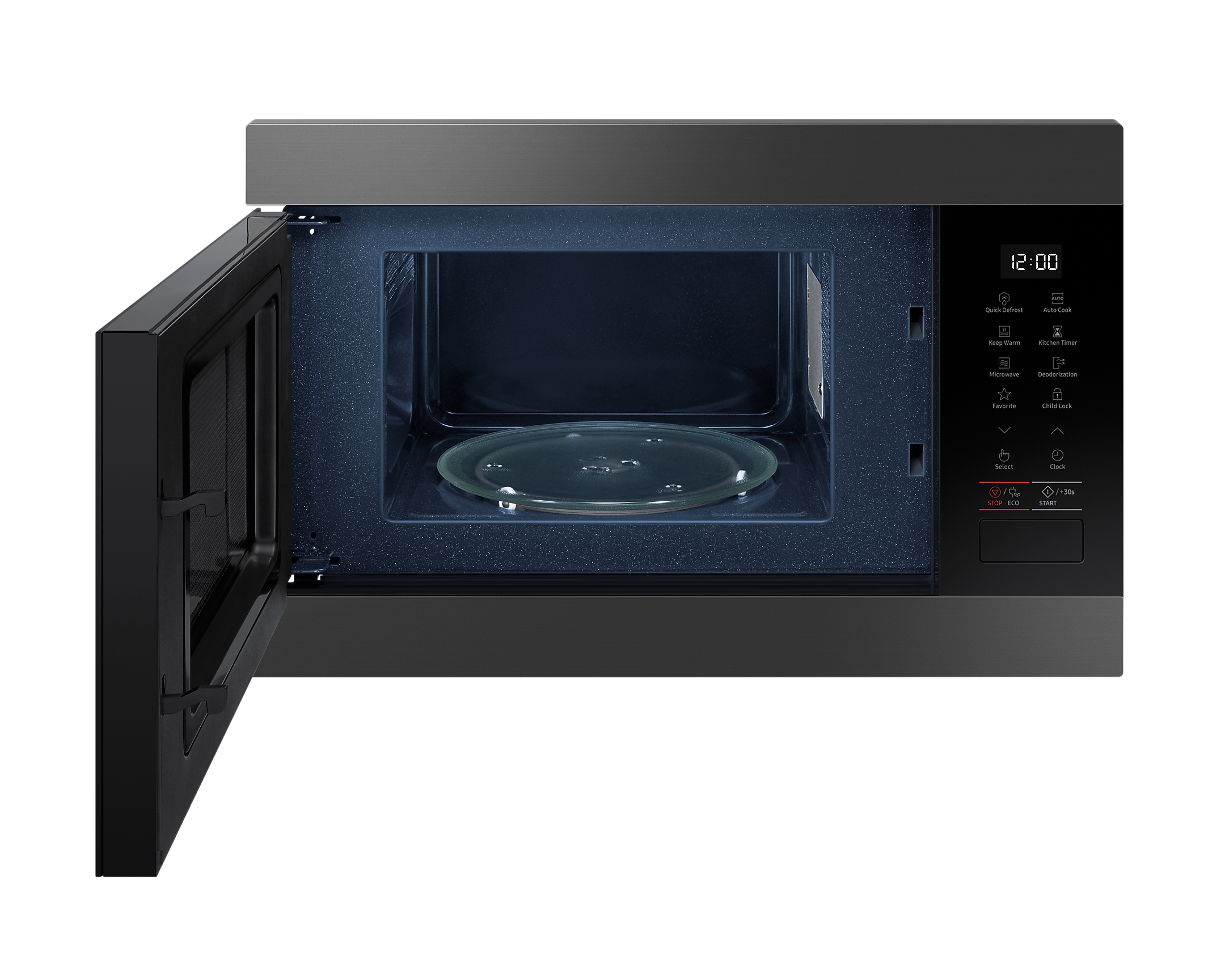 Крім того, мікрохвильова піч має енергозберігаючий режим ECO, що дозволяє знижувати енергоспоживання до 40% під час роботи в режимі очікування. Вона легко впишеться в будь-який інтер'єр завдяки елегантному дизайну та матовому графітовому кольору.