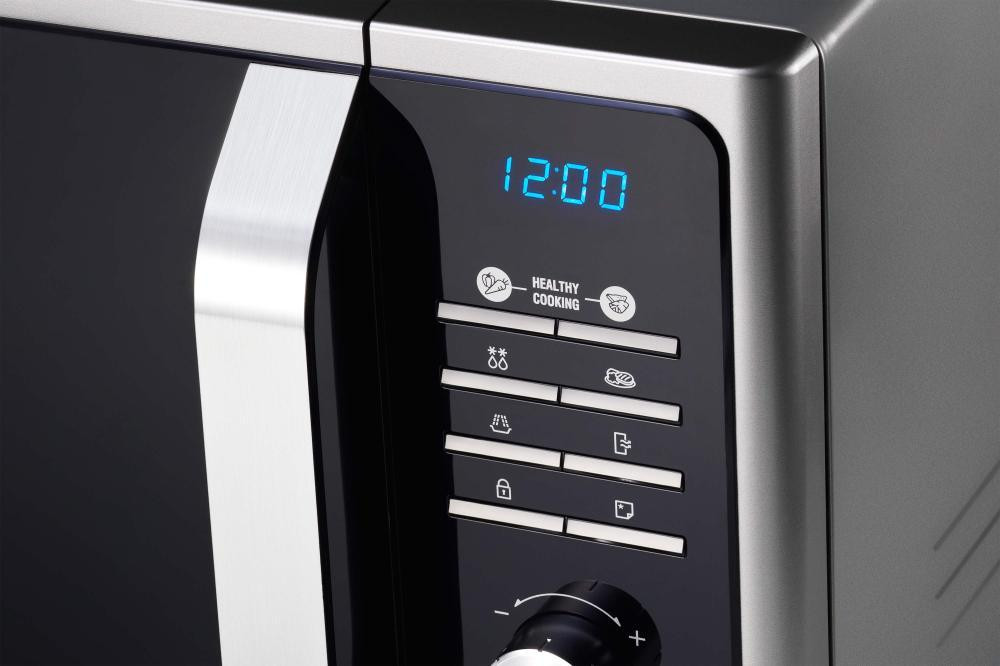 Основною перевагою даної мікрохвильової печі є електронне управління, що забезпечує зручність у використанні. Ви зможете вибрати один із шести рівнів потужності, максимальна з яких становить 800 Вт. Також у Samsung MS23F301TAS є функція автоматичного розморожування, що значно спростить процес приготування страв з заморожених продуктів.
