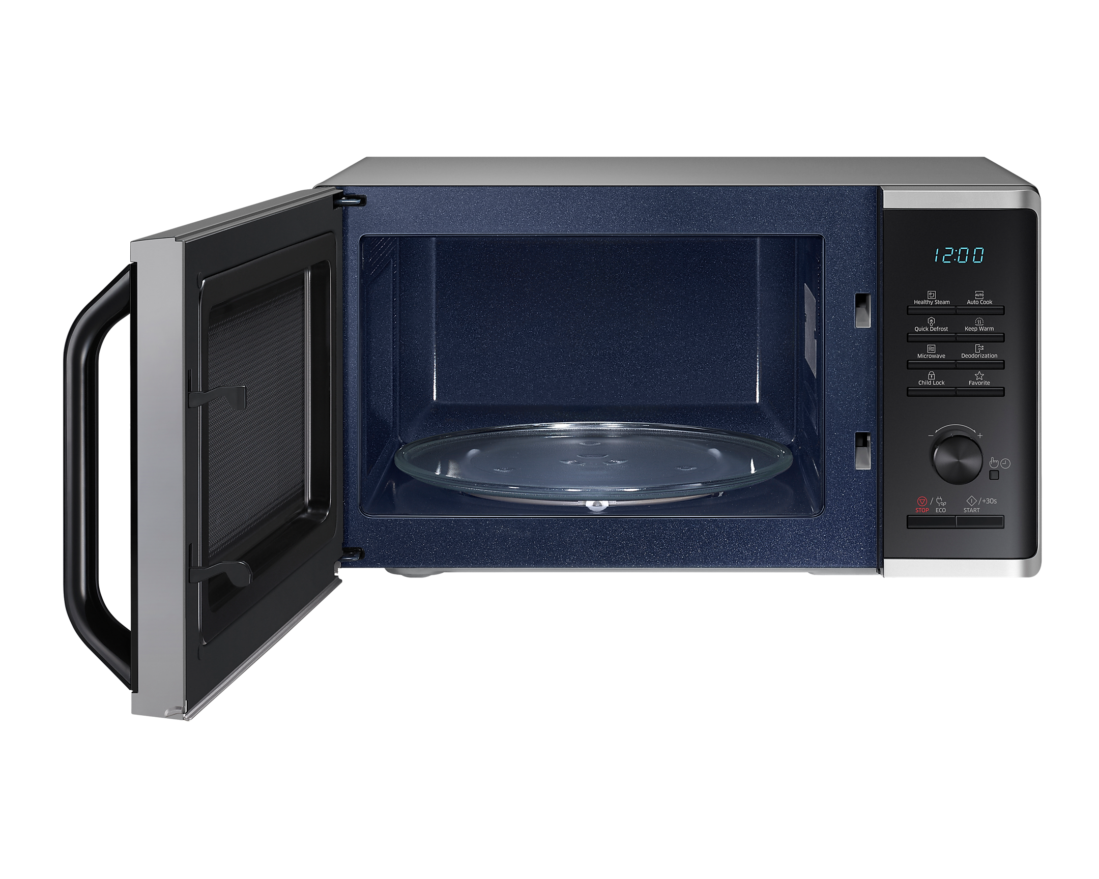 Особливістю цієї моделі є Healthy Steam — функція парового приготування, яка дозволяє зберегти всі корисні речовини та натуральний смак продуктів. Ви просто обираєте вид їжі та її порцію, а мікрохвильова піч самостійно визначає оптимальний час приготування. Крім того, Quick Defrost дозволяє швидко і дбайливо розморожувати продукти, такі як м'ясо, риба чи випічка.
