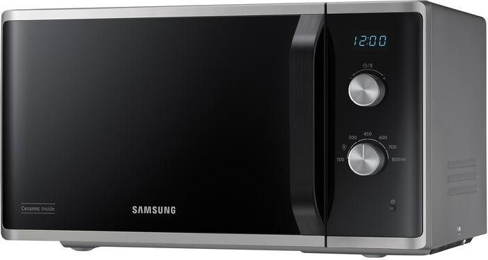 Внутрішній об'єм печі обладнаний поворотним столиком діаметром 288 мм, а поверхня — біокераміка, що проста у догляді та має антибактеріальні властивості. Ще одна перевага — можливість розморожування їжі в двох режимах: автоматично за вагою або за встановленим часом. Розміри мікрохвильової печі складають 48,9 x 27,5 x 37,4 см, а відкриття дверцят здійснюється за допомогою зручної ручки.