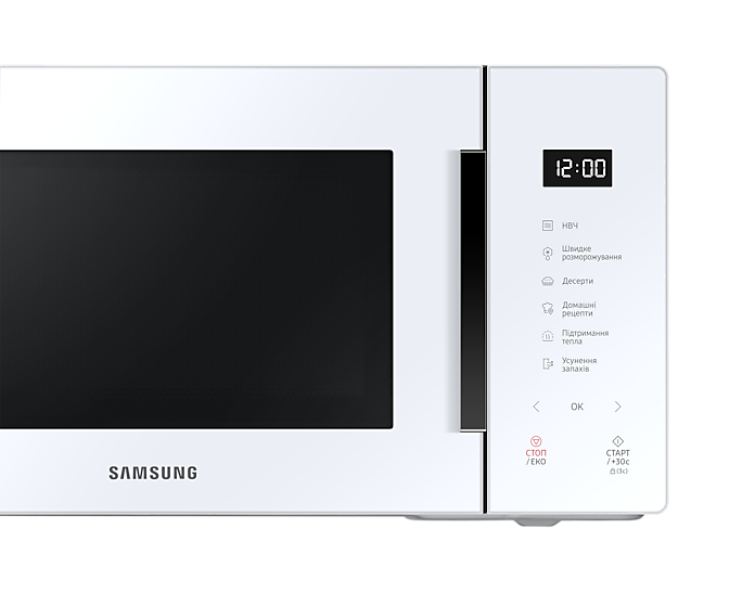 Зберігайте енергію з економічним режимом ECO, що зменшує споживання електроенергії під час простою. Мікрохвильова піч Samsung MS23T5018AW/UA – це сучасний вибір для елегантної та функціональної кухні, яка поєднує в собі швидкість, стиль та зручність.