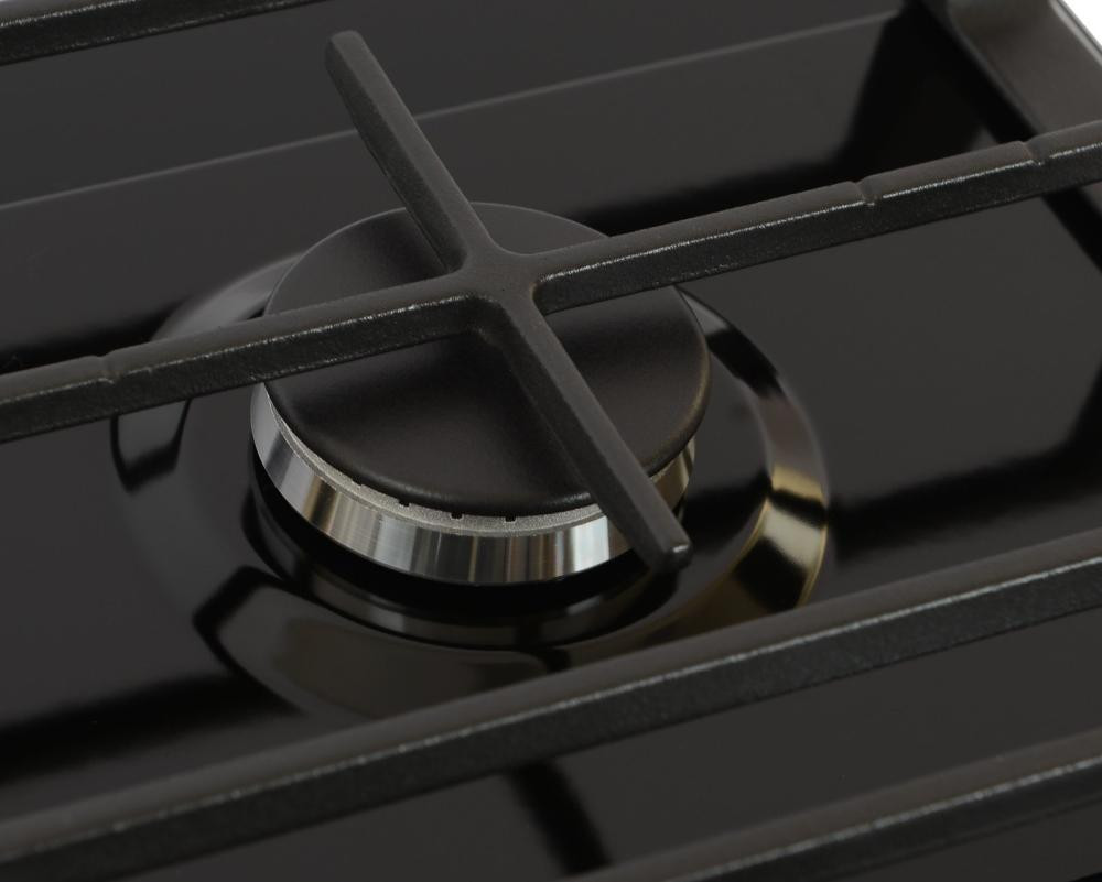 Ця варильна поверхня оснащена чотирма газовими конфорками, включаючи економічну конфорку та конфорку WOK з двома рядами полум'я, що дозволить готувати з максимальною зручністю і швидкість. Електрозапалювання значно спростить процес запуску конфорок, а газ-контроль забезпечить додаткову безпеку під час використання.