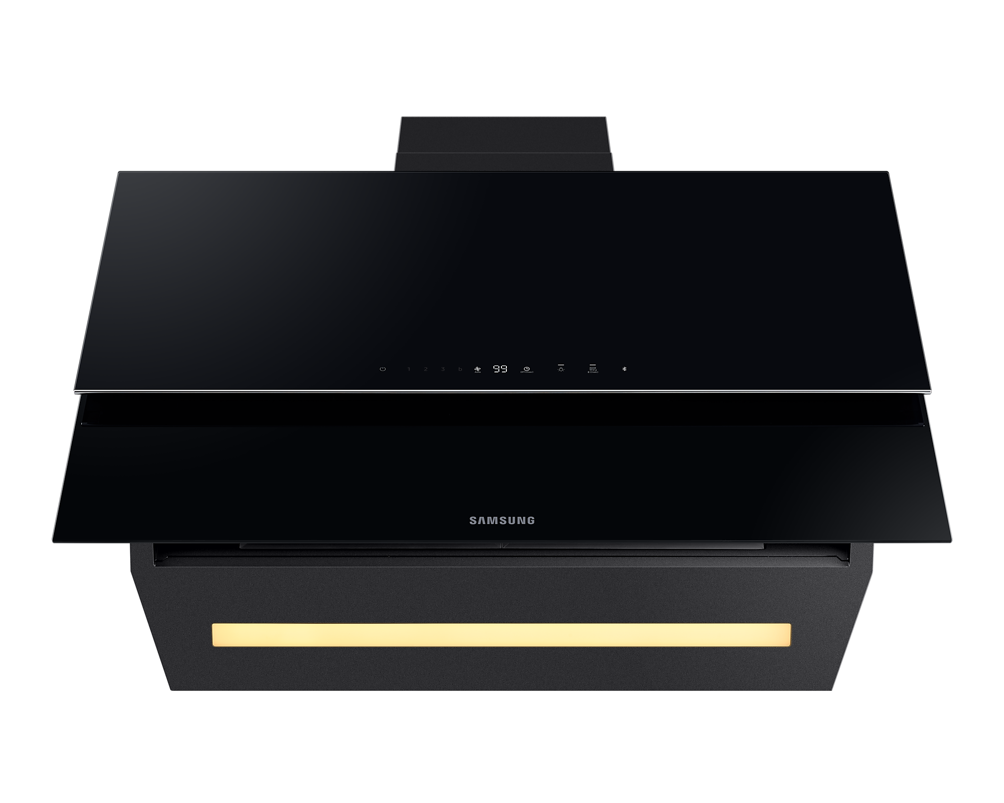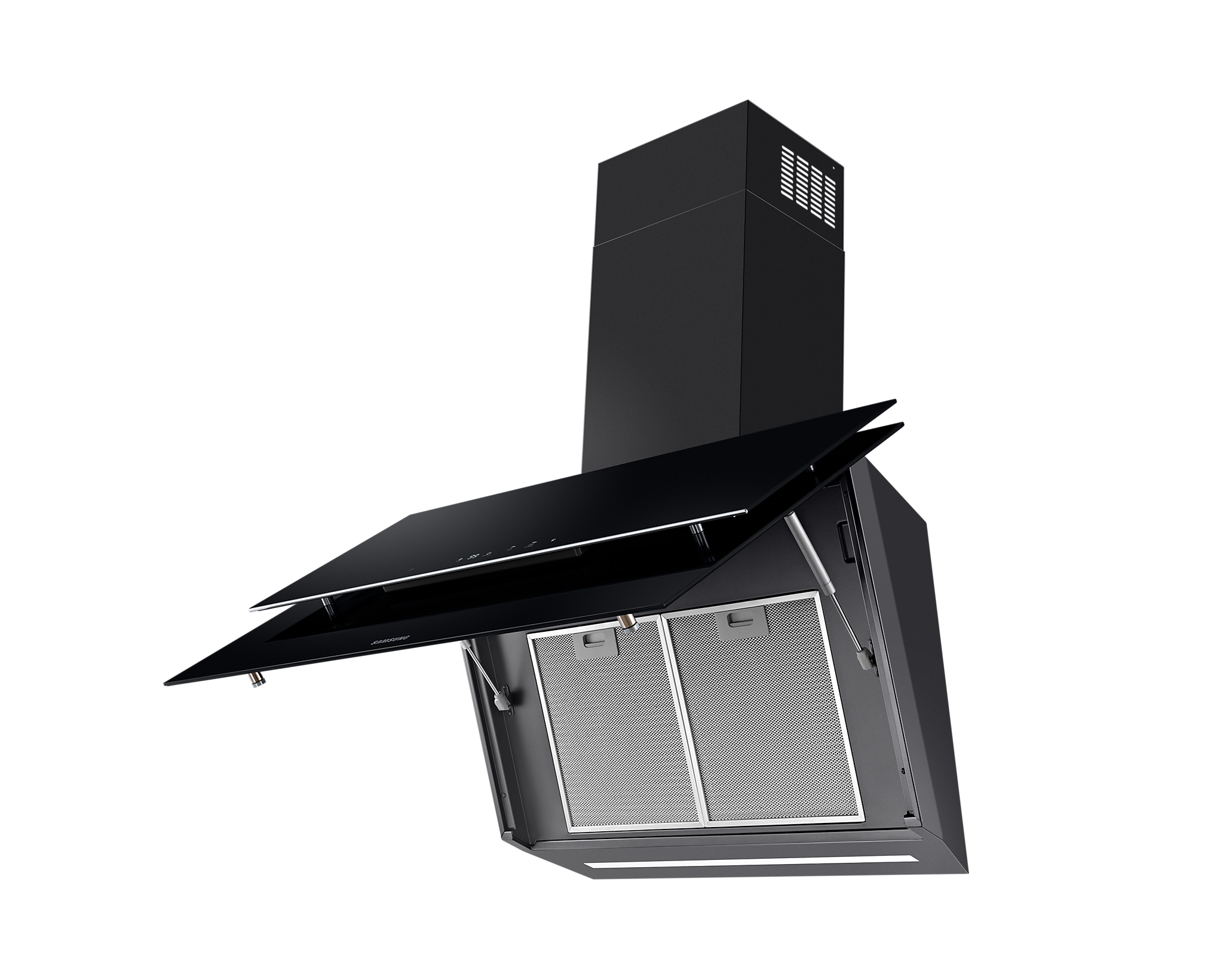 Преміум-дизайн витяжки включає чорне скло та елегантні профілі, що відмінно вписуються в будь-який інтер'єр кухні. А дотикове керування з інтегрованим LED-панелем легко та інтуїтивно, дозволяючи в один дотик налаштувати роботу витяжки.