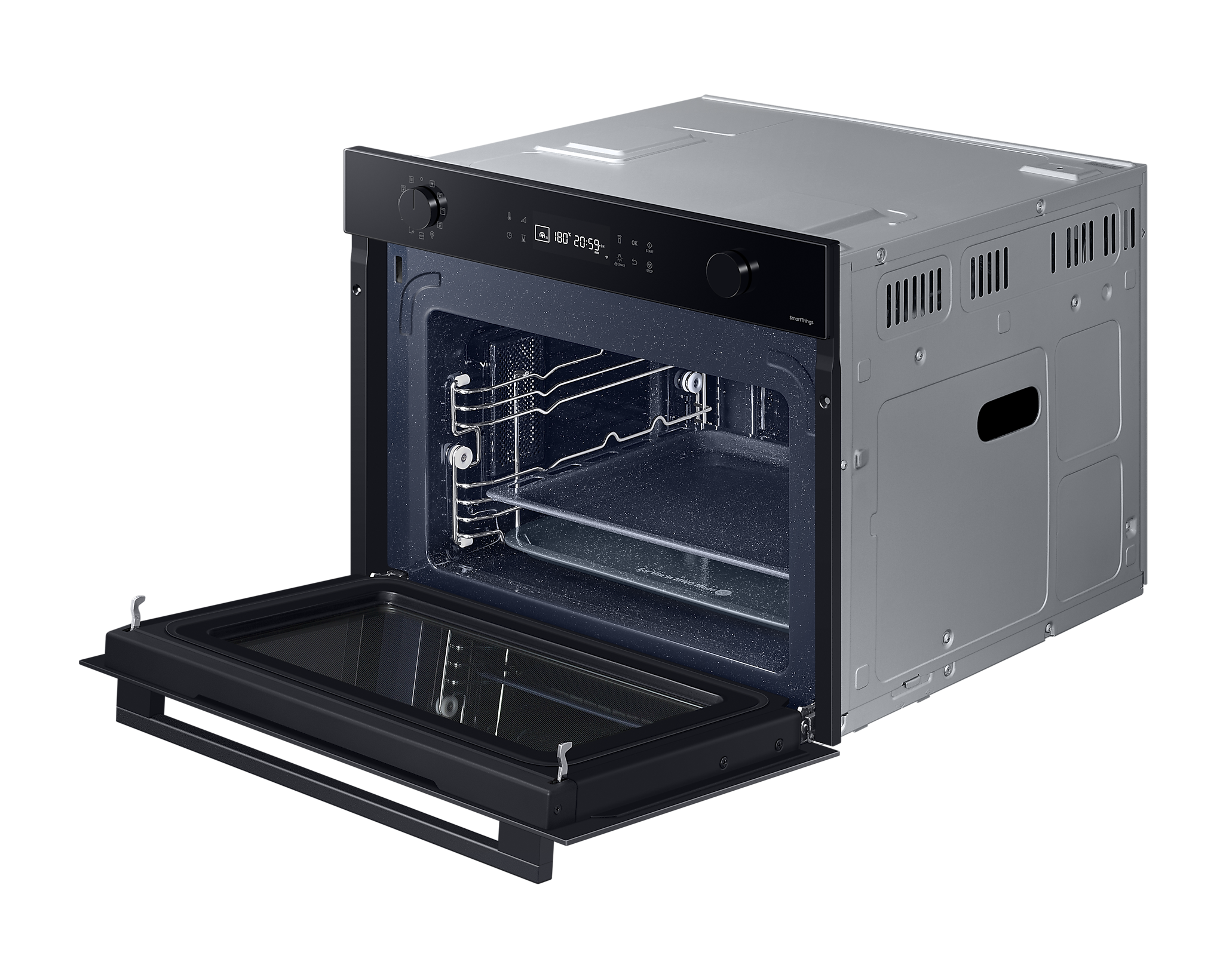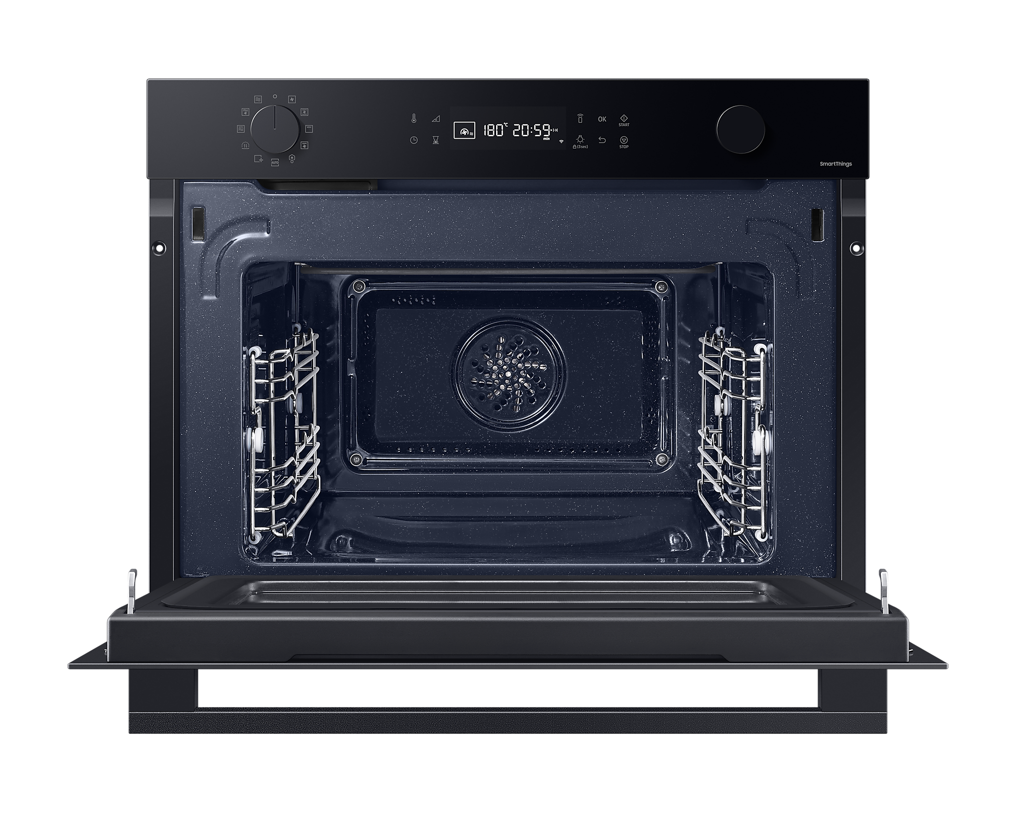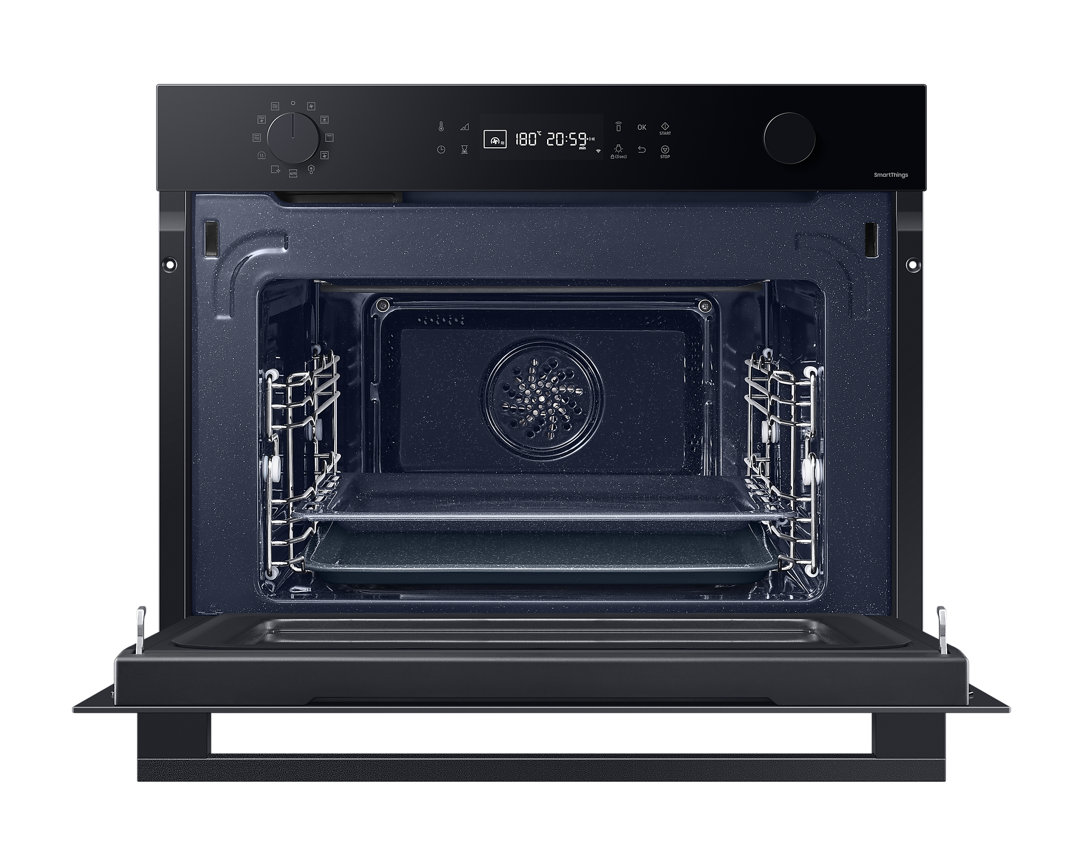 Духовий шаф Samsung NQ5B4553FBK/U2 поєднує в собі стильний дизайн та інноваційні технології, що значно спрощують приготування їжі. З його вбудованим Wi-Fi ви зможете управляти приладом з будь-якої точки, використовуючи додаток Samsung SmartThings. Це дозволяє не лише контролювати процес приготування, але й обирати оптимальні режими для ваших страв.