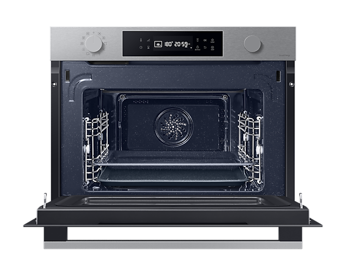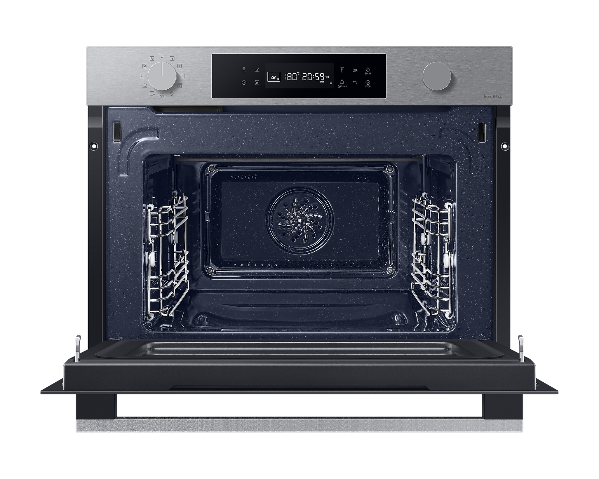 Однією з ключових особливостей цього духового шафу є функція мікрохвильової печі, що дозволяє значно пришвидшити процес приготування страв. Крім того, технологія SmartThings Cooking спростить контроль за приготуванням: ви зможете легко перевіряти стан приладу та налаштовувати його через ваш смартфон завдяки вбудованому Wi-Fi.