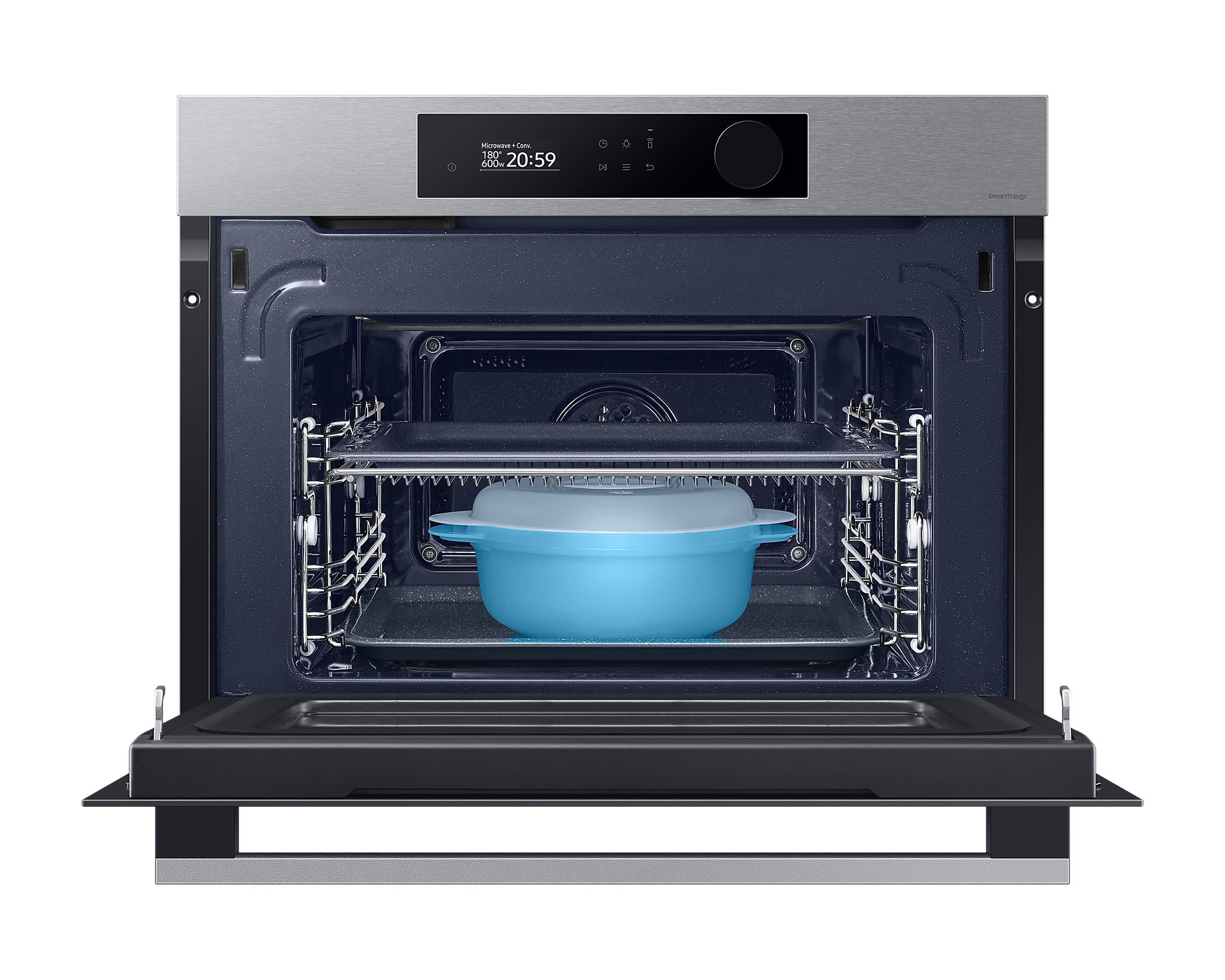 Духовий шаф Samsung підтримує Air Fry, що забезпечує приготування здорових смажених страв без використання олії, завдяки технології циркуляції гарячого повітря. Розроблений із зручним інтерфейсом, він має інтуїтивну панель управління з LCD-дисплеєм та можливістю підключення через Wi-Fi для контролю вашого кухонного приладу з будь-якої точки.