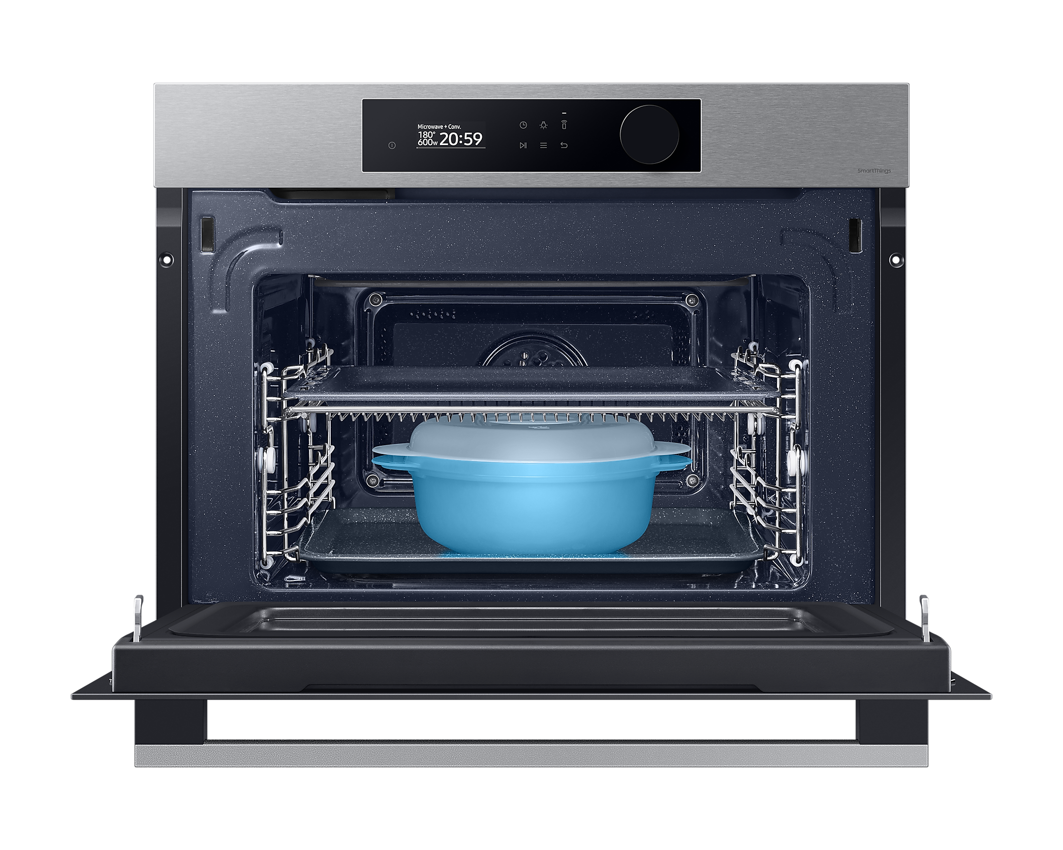 Духовий шаф Samsung NQ5B5763DDS/U1 поєднує в собі сучасний дизайн та інноваційні технології для створення смачних страв. Завдяки природному паровому приготуванню, ви зможете насолоджуватися соковитими стравами з хрусткою скоринкою, не використовуючи додаткові прилади. Усього лише розмістіть форму для випікання на дні духовки, додайте воду, і розпочнеться процес парового готування.