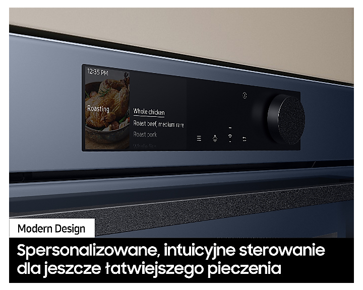 Естетичний мінімалістичний дизайн духового шкафа з сенсорним управлінням робить його використання інтуїтивно зрозумілим. Стильний дисплей LCD 4,3 дюйма забезпечує легкий доступ до всіх функцій. Ваша кухня отримає неповторний стиль завдяки Bespoke закінченню, доступному в сучасних кольорах.