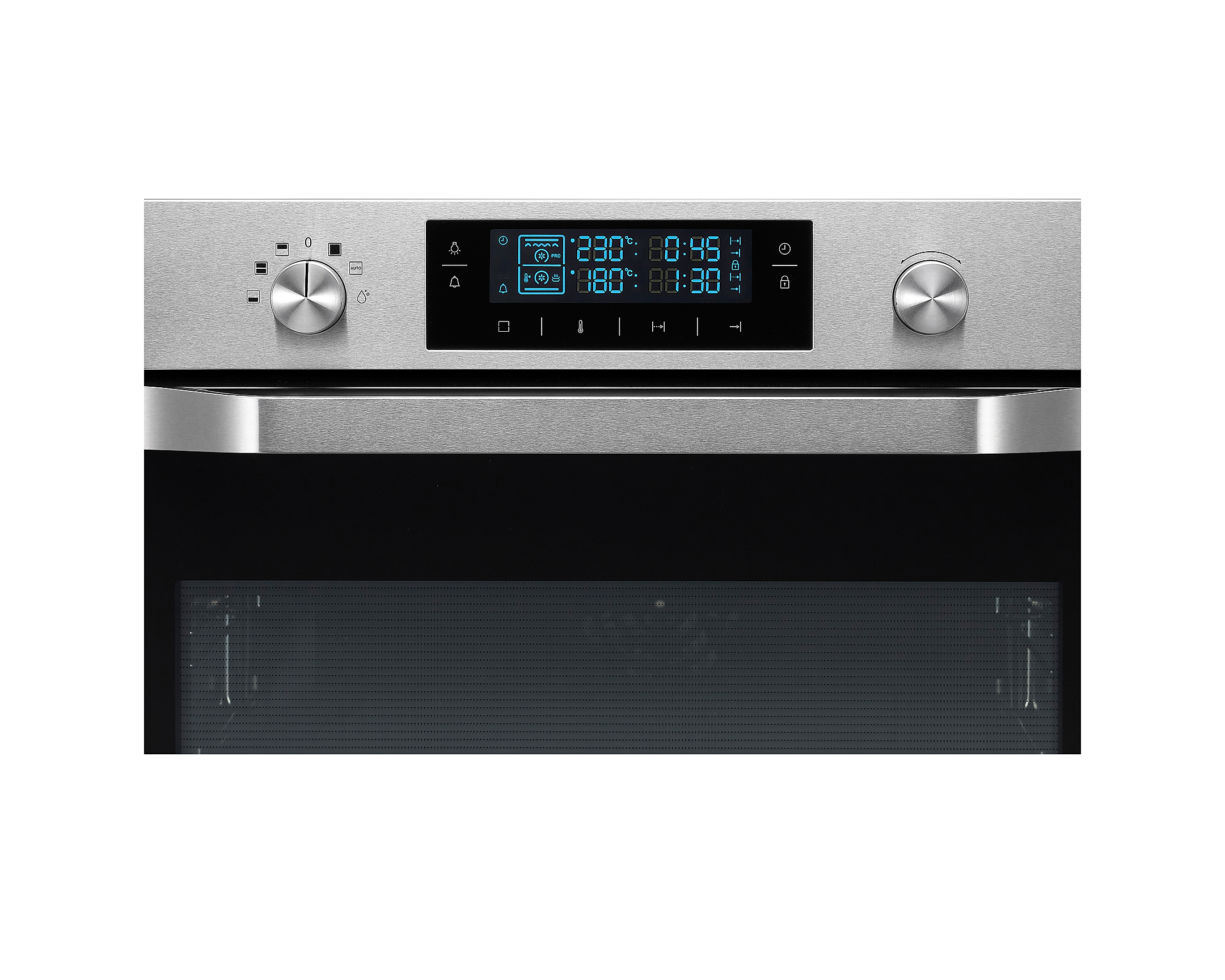 Завдяки технології Pro-roast, ви зможете смажити м’ясо і залишати його соковитим, а Intensive heat забезпечить рівномірне приготування шарованих страв, таких як запіканки й гратини. Духовий шкаф оснащений двома LED-дисплеями, які вказують точні налаштування температури та часу приготування для кожної з частин, що спрощує організацію багатопроцесного приготування.