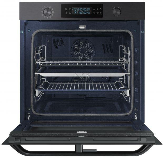 Представляємо електричну духовку Samsung NV75N5671RM, яка вражає своєю технологією **DUAL COOK**, що дозволяє одночасно приготувати дві страви без змішування їх запахів. Ця модель має **потужність 3950 Вт** та великий **об'єм 75 л**, що забезпечує комфортне використання для родинних обідів або святкових прийомів.