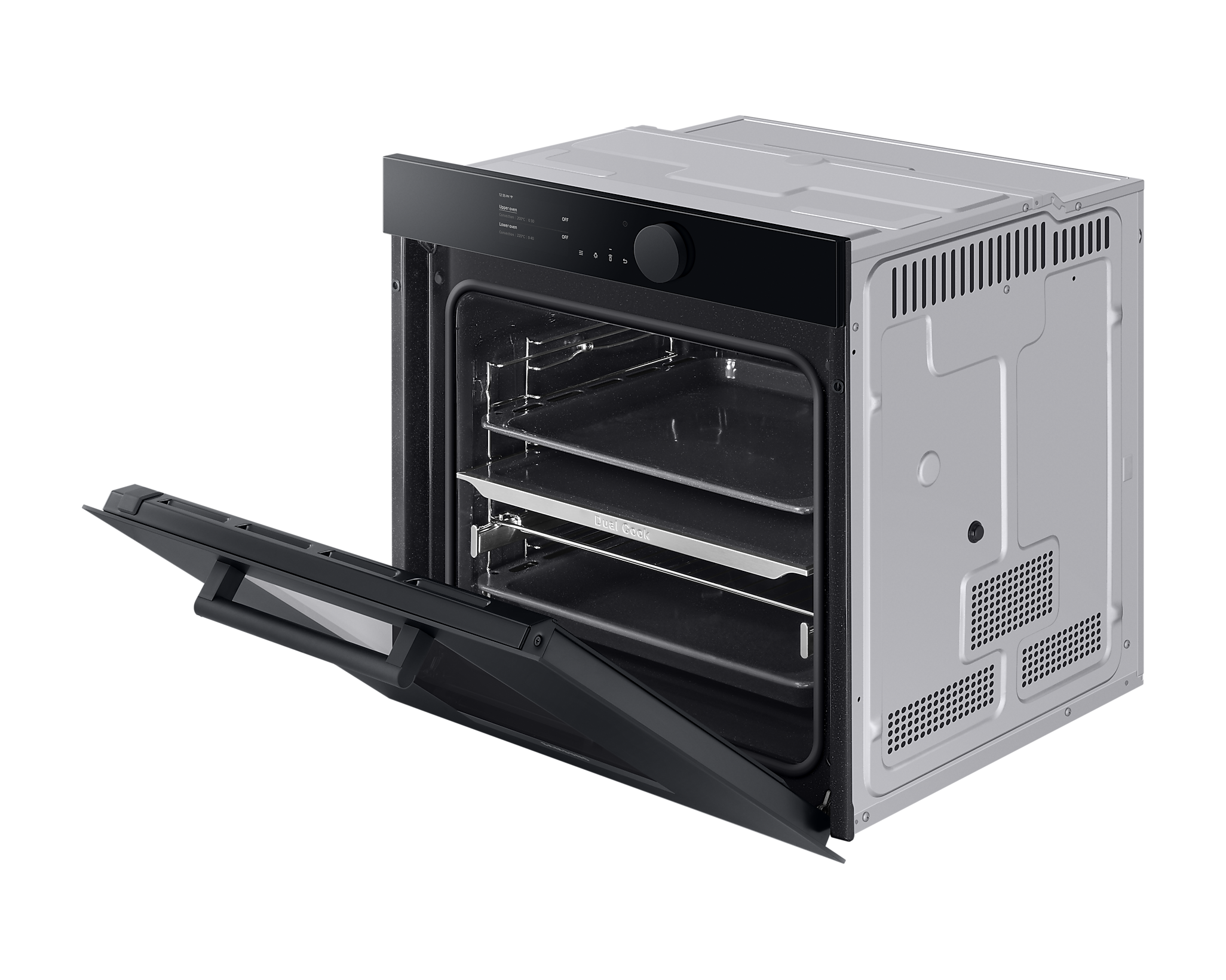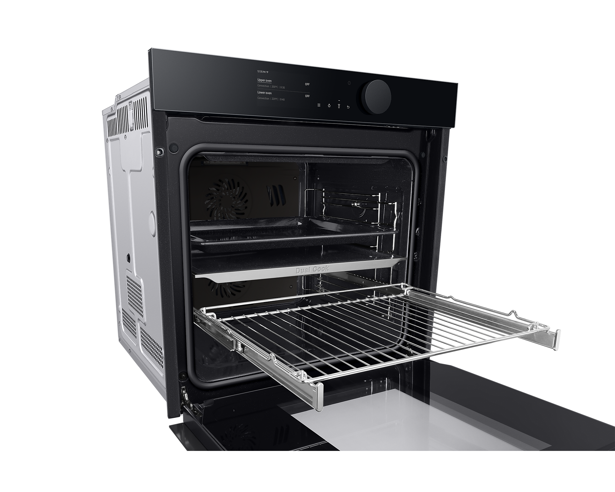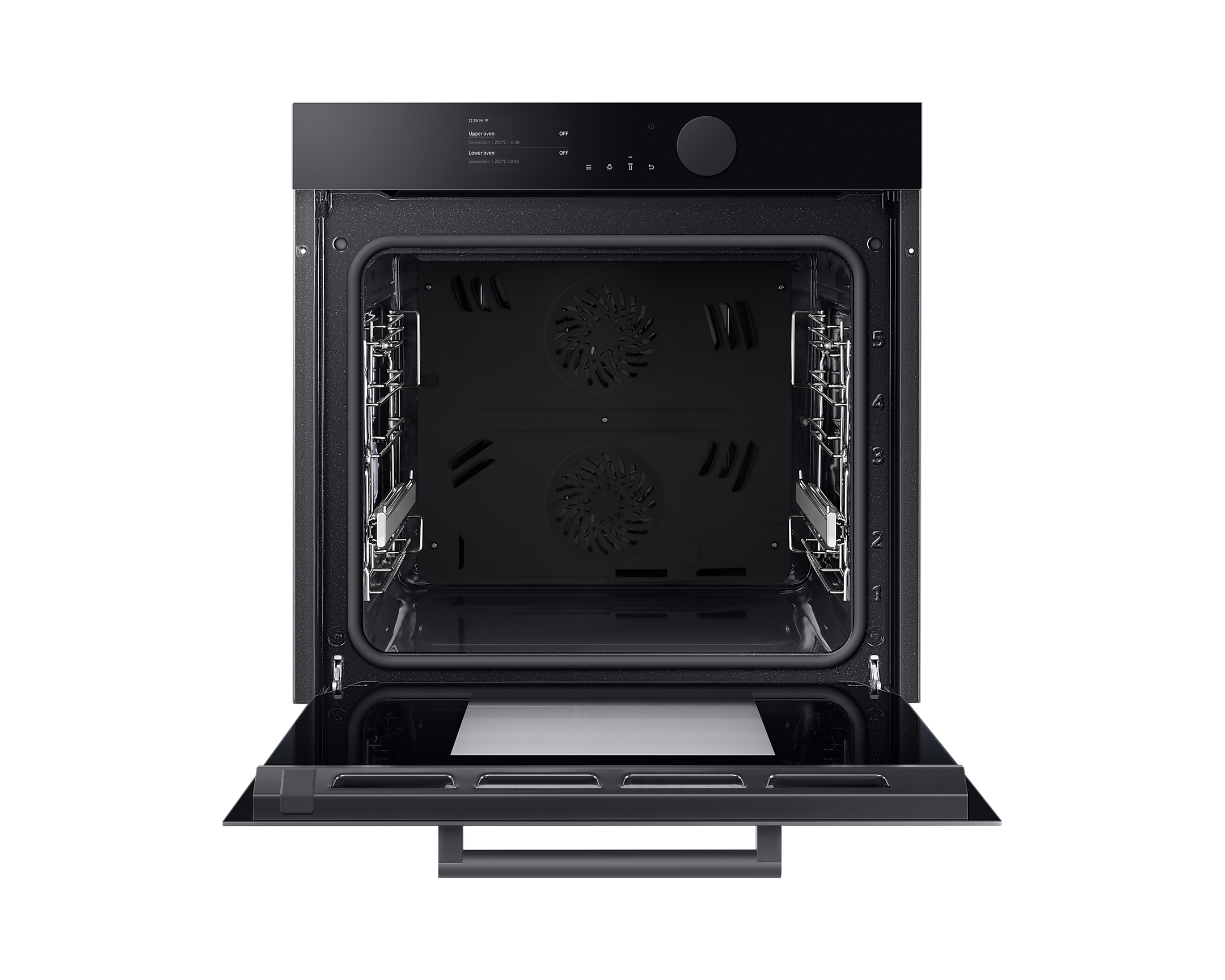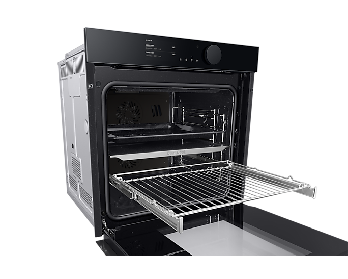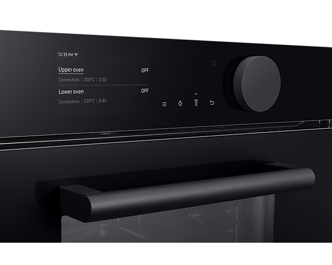 Додатково, колірний дисплей TFT-LCD діагоналлю 4,3 дюйма та зручне велике колесо управління дозволяють інтуїтивно встановлювати параметри приготування. Ви легко зможете контролювати процес приготування завдяки Wi-Fi зв’язку та застосунку SmartThings, що надає можливість моніторингу та керування духовкою з будь-якого місця.