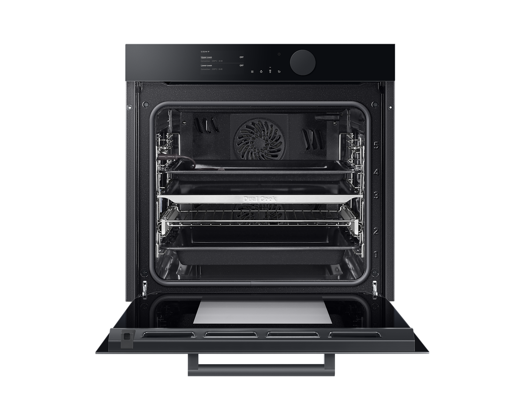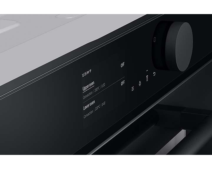 Зручність використання забезпечується 4,3' TFT-LCD дисплеєм з поворотною ручкою, що надає легкий доступ до всіх функцій. Завдяки WLAN-з'єднанню та SmartThings, ви можете контролювати духовку навіть з вашого смартфона, здійснюючи налаштування та використовуючи кулінарні поради.